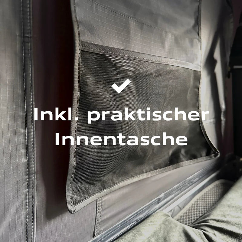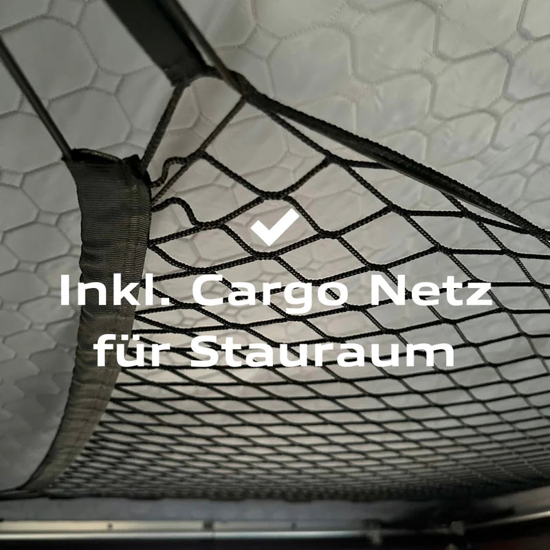 Unter dem Dach der Hartschale findest du ein Staunetz, das reichlich Stauraum für diverse Utensilien bietet. Eine zusätzliche Tasche für Handy, Taschenlampe und Co. kannst du beliebig an den Wänden des Themis Hartschalen-Dachzeltes mit Klettverschluss befestigen. Besonders nützlich ist die Tasche außen am Zelt, die sich perfekt zur Aufbewahrung deiner schmutzigen Schuhe eignet - so bleibt das Innere deines Zeltes stets sauber.