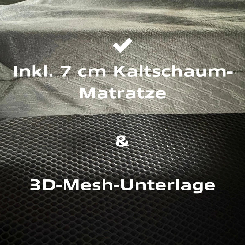 - Matratze: hochwertige Kaltschaum-Matratze (7 cm stark)