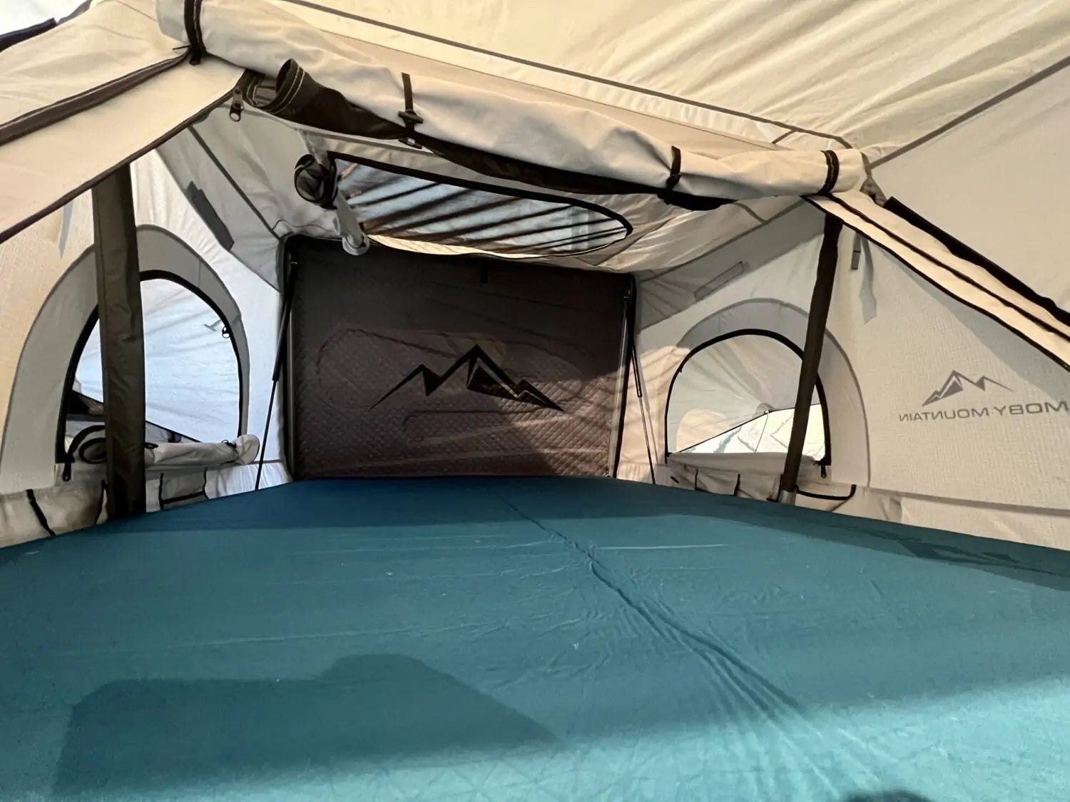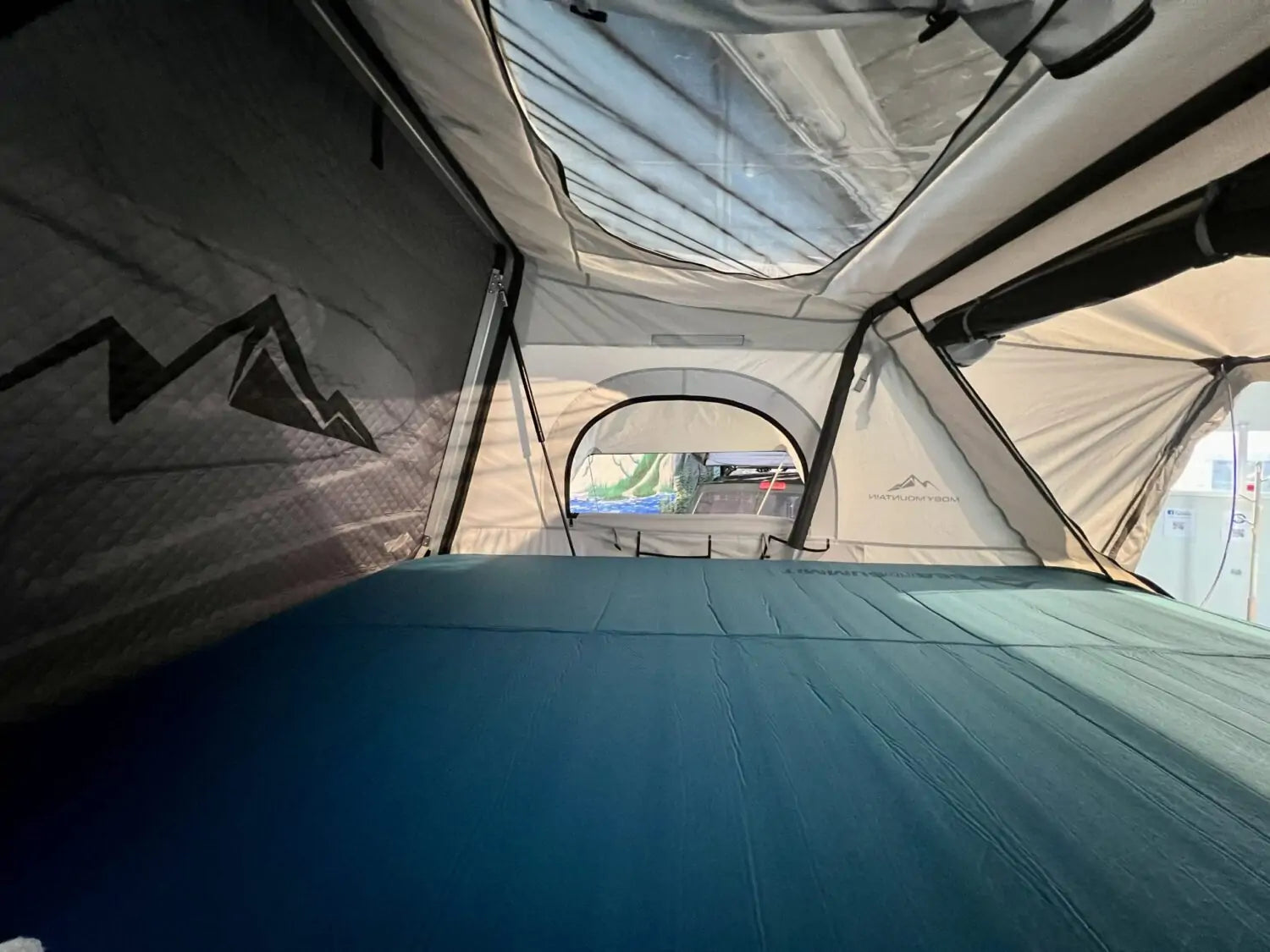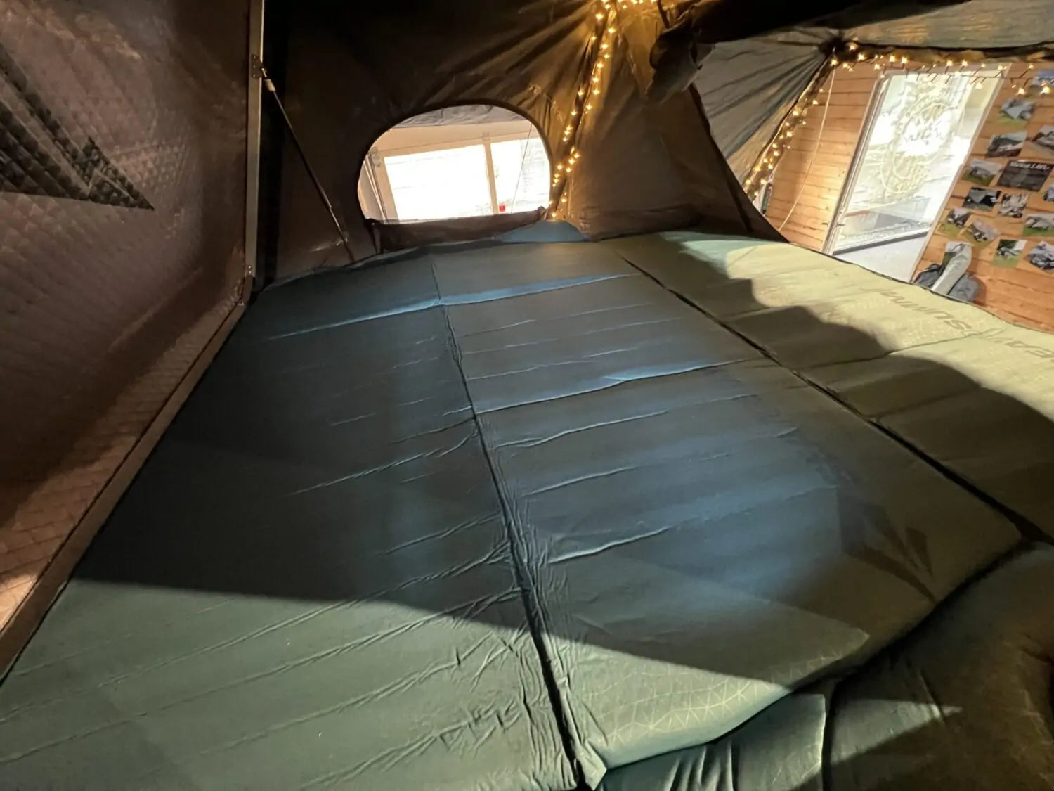 Wenn Sie 1 x Deluxe Double + 1 x Deluxe Single kaufen, füllen diese zusammen den gesamten Boden Ihres Peak XXL-Dachzelts aus, mit etwas Überstand an der Zeltstange, die nur ein wenig nach oben gebogen werden muss.