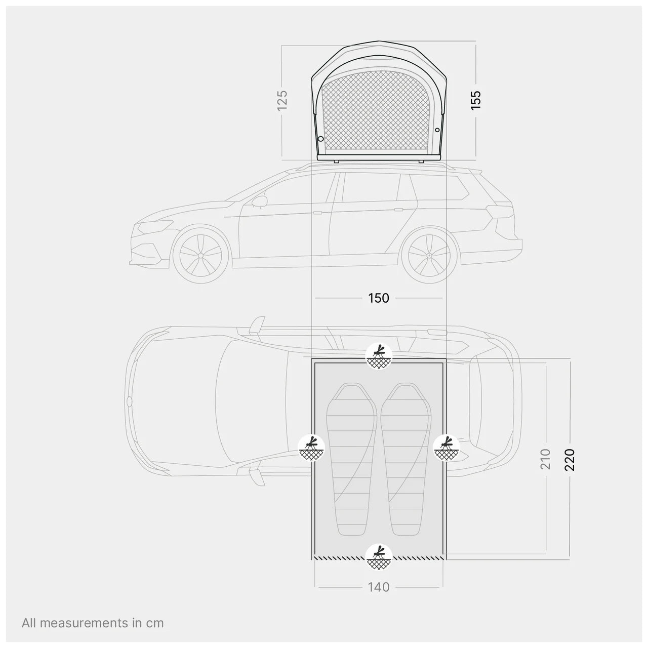 Passt auf fast alle Fahrzeuge mit mindestens 60 kg Dachlast.