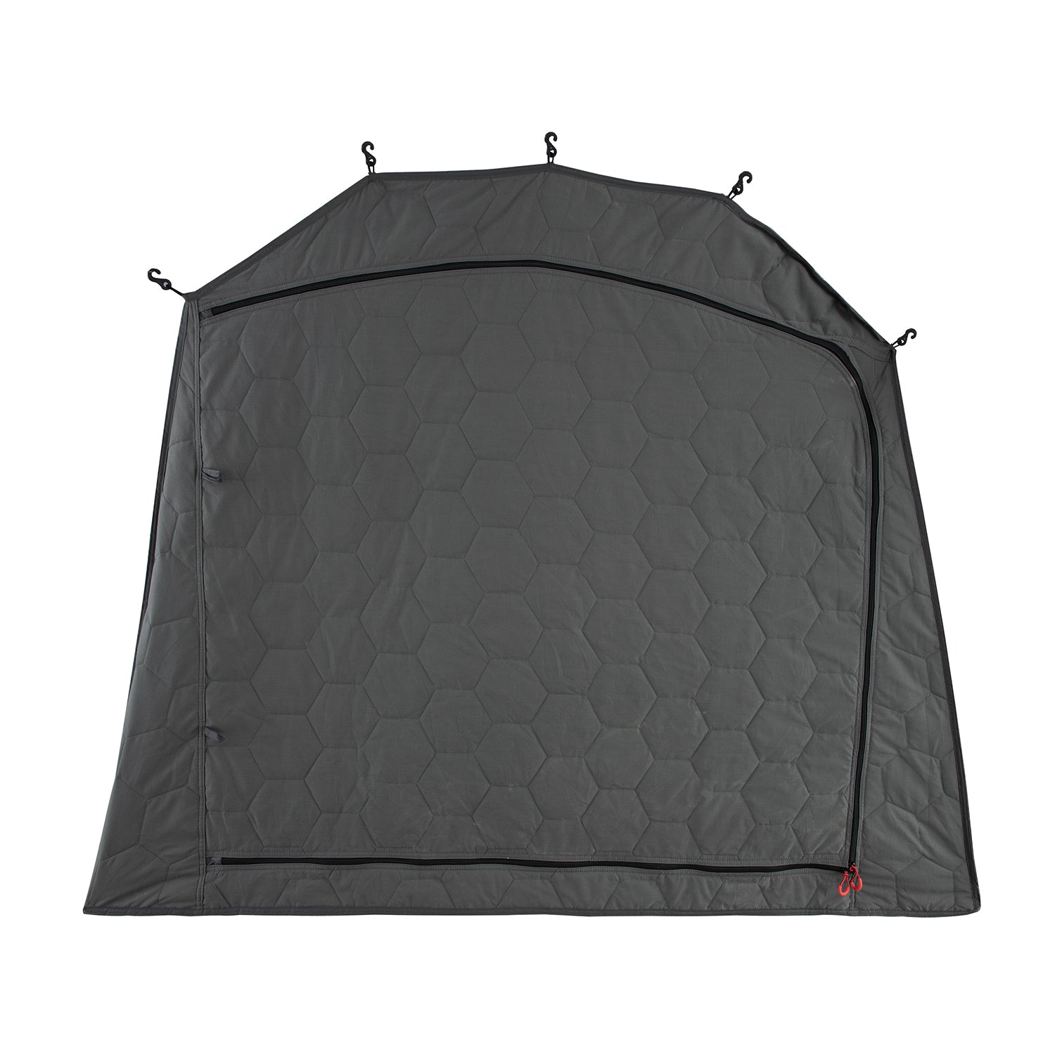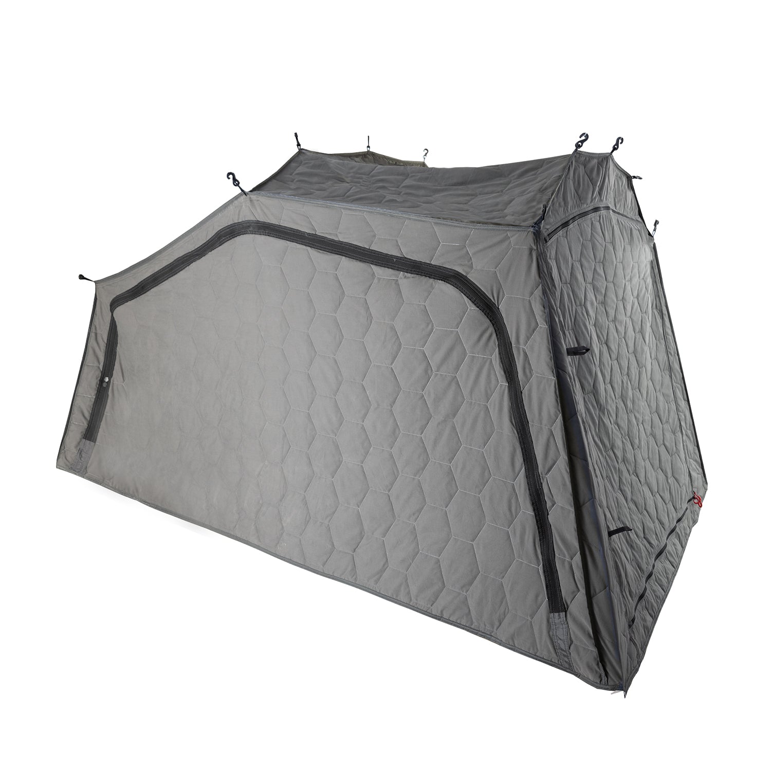 Das passende Thermo Tent gibt es für alle qeedo Dachzelte. Es besteht aus Polyester und mit Baumwolle gefüllten Wattierung. Besonders praktisch: Es ist so konstruiert, dass Ein- und Ausgang sowie Fenster passgenau übereinander liegen.