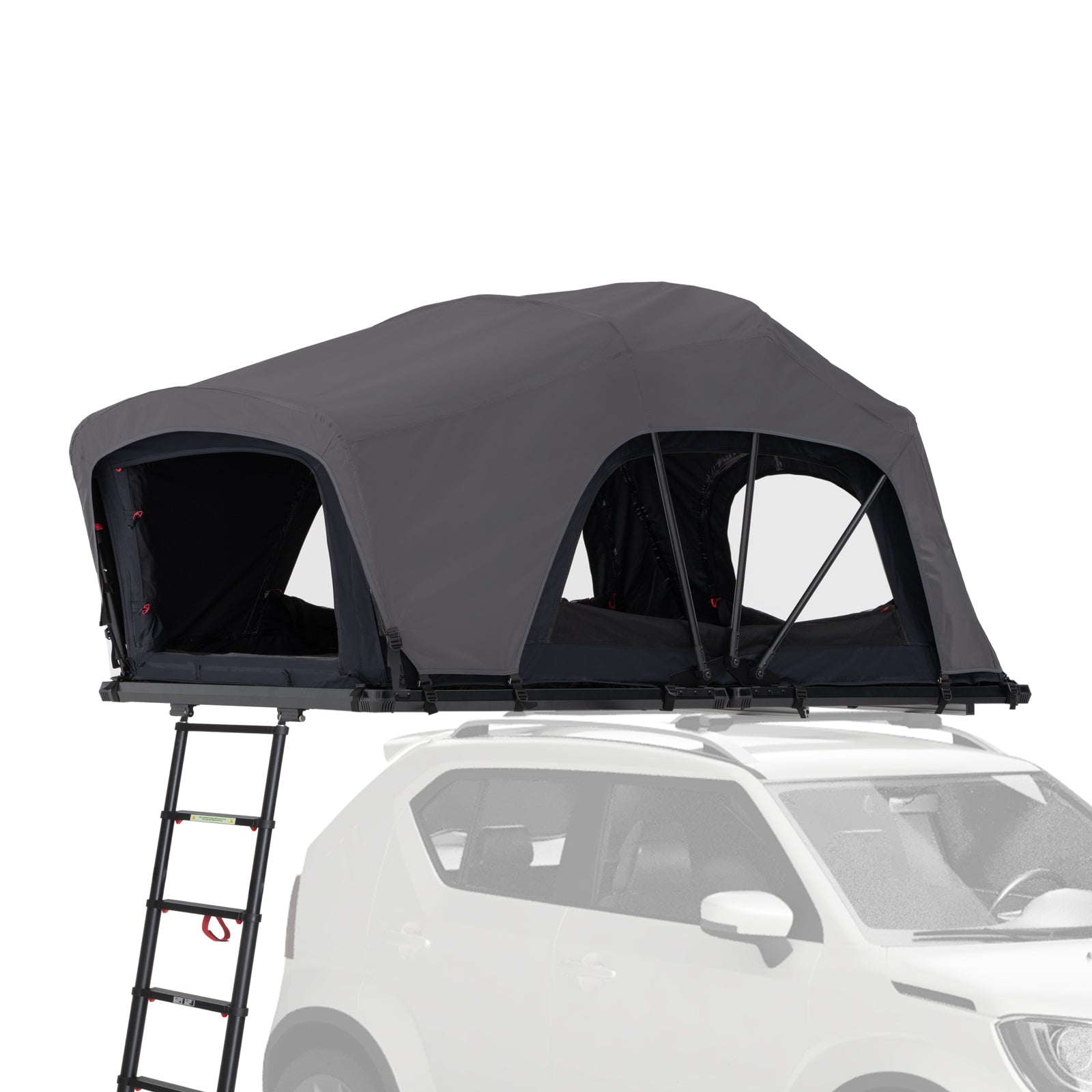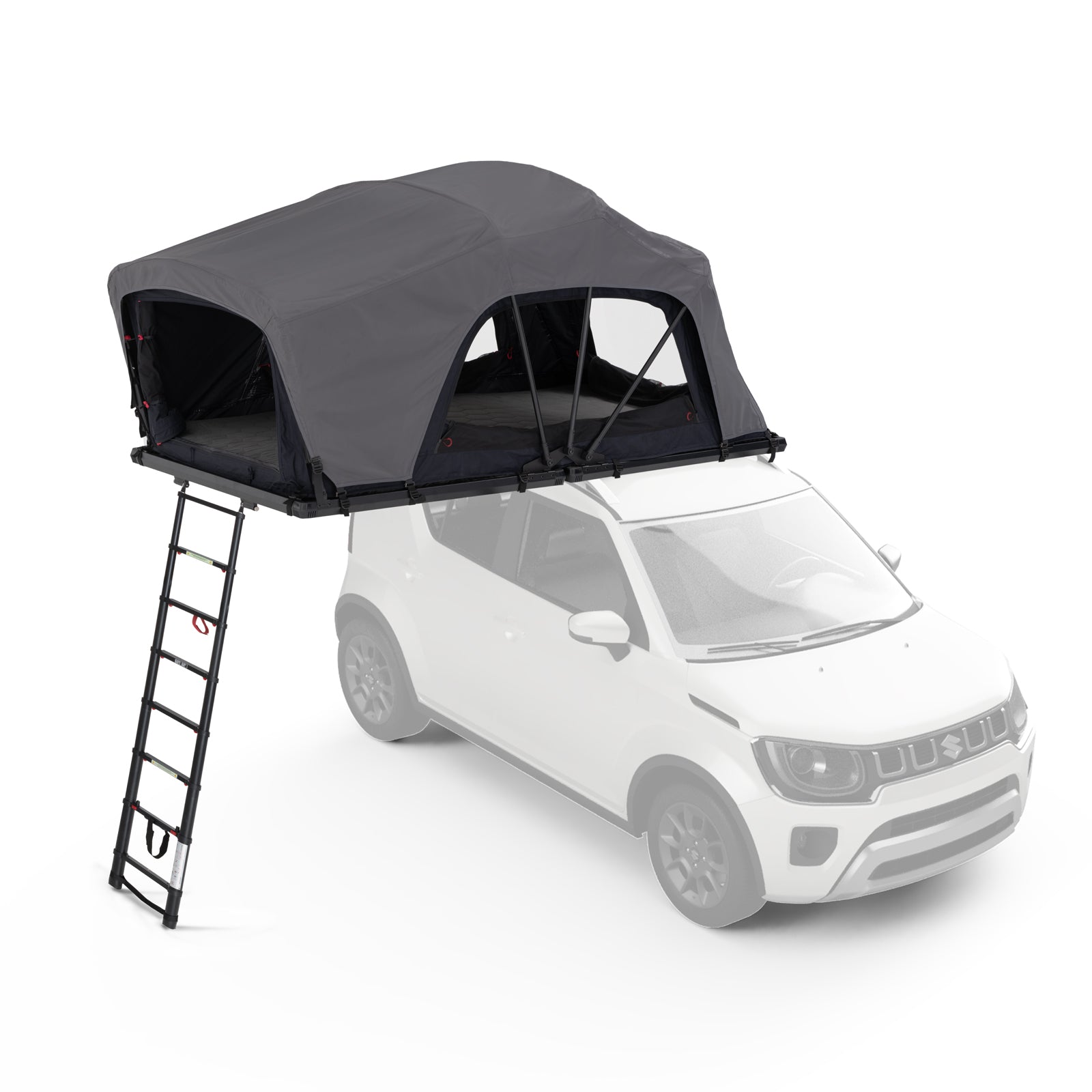 Ein klappbares Softcover-Dachzelt - erhältlich in zwei Größen. Komfortablen Liegebreite ideal für drei Personen.
