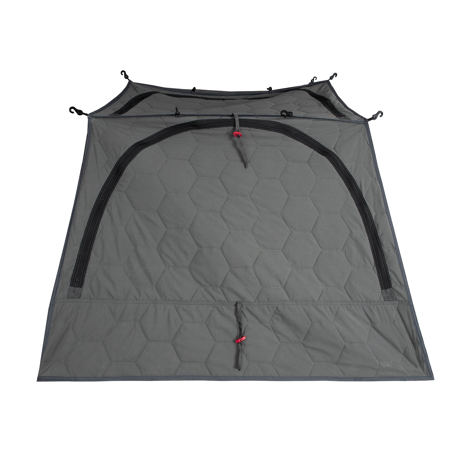 Das passende Thermo Tent gibt es für alle qeedo Dachzelte. Es besteht aus Polyester und mit Baumwolle gefüllten Wattierung. Besonders praktisch: Es ist so konstruiert, dass Ein- und Ausgang sowie Fenster passgenau übereinander liegen.