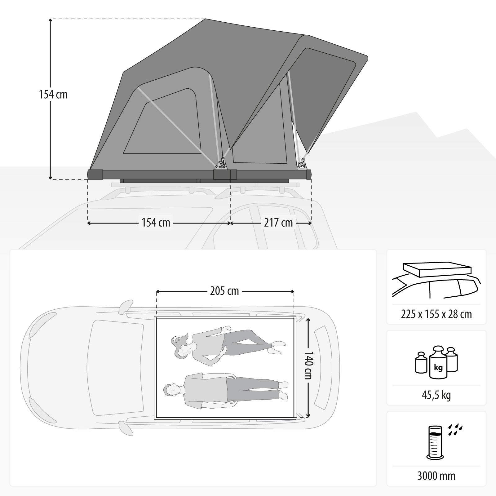 Leichtes Dachzelt für 2 Personen zum sensationellen Preis. Geniale Optik auf langen Fahrzeugen. Nicht klappbar (Fix-Size).