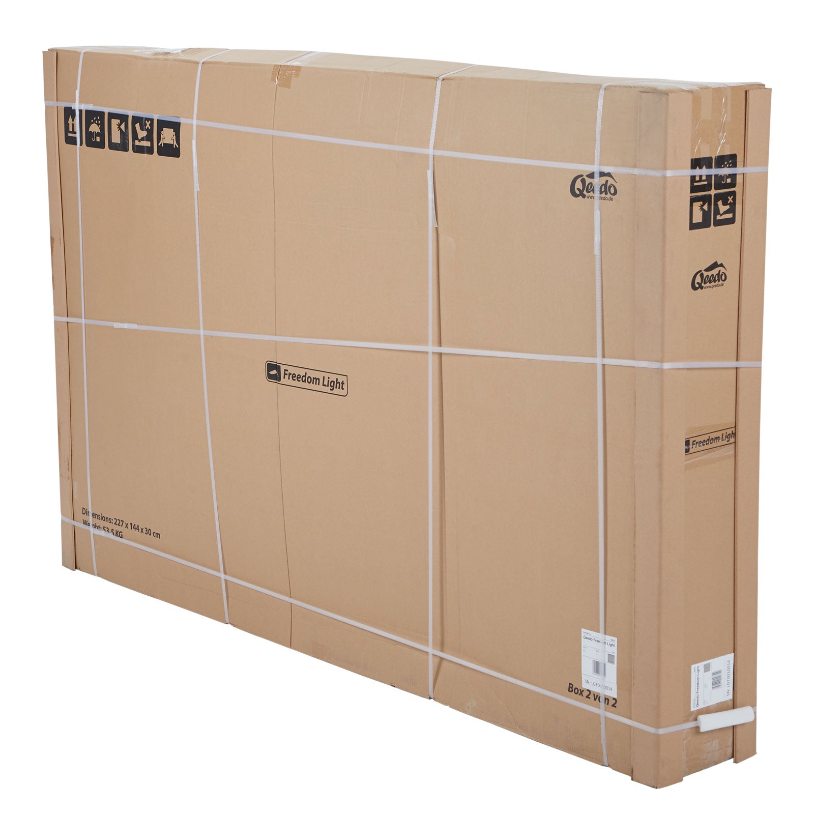Auf einer Hartschaumplatte liegt zusätzlich eine weiche Schaummatratze mit waschbarem, gestepptem Baumwollbezug. Die 205 x 140 x 7 cm große, Matratze ist nicht nur bequem, sondern auch praktisch und hygienisch. Sie macht das Freedom Light zum perfekten Dachzelt für 2 Personen – oder bietet dir allein ganz viel Platz.