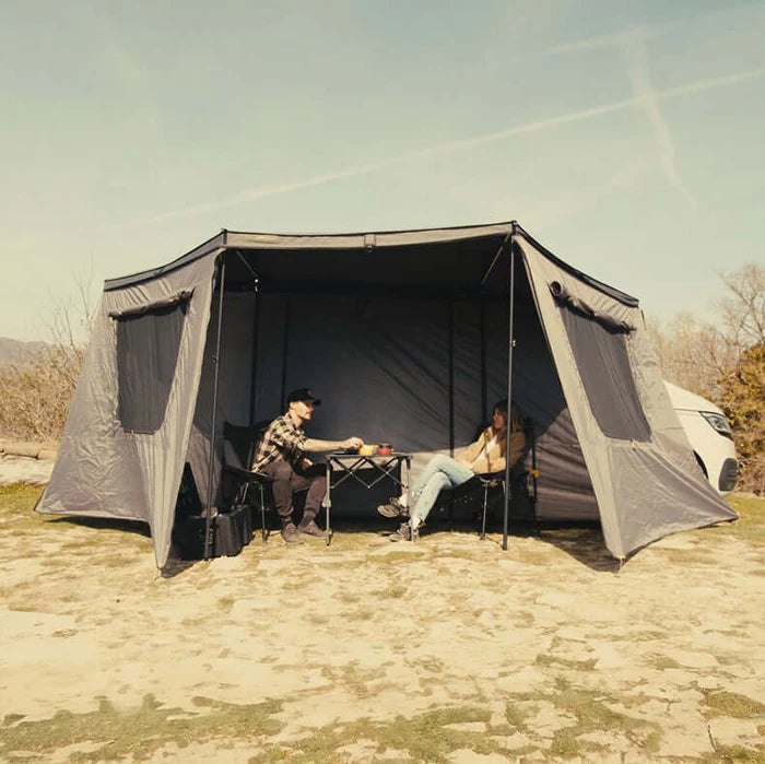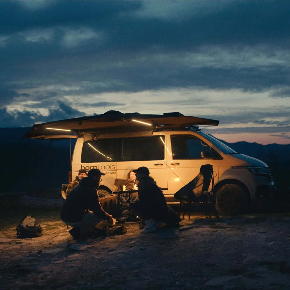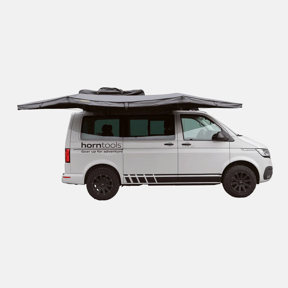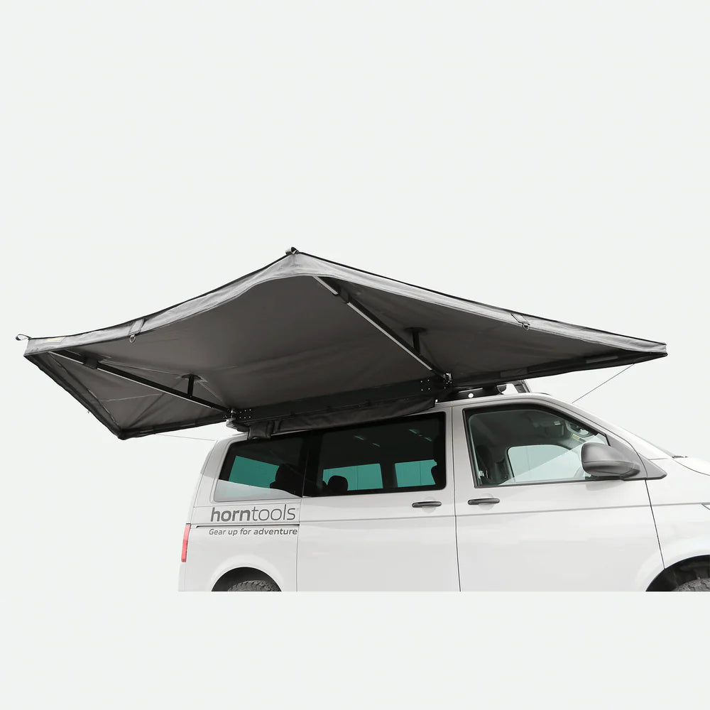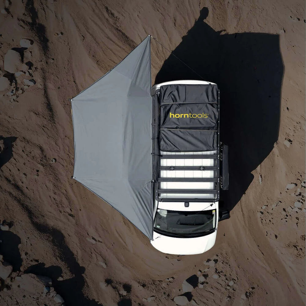Die innovative 180° Markise Horizon von horntools ist eine der leichtesten freitragenden Markisen am Markt und kommt mit einigen spannenden Features, um perfekten Schutz auf deinen Abenteuern zu bieten.