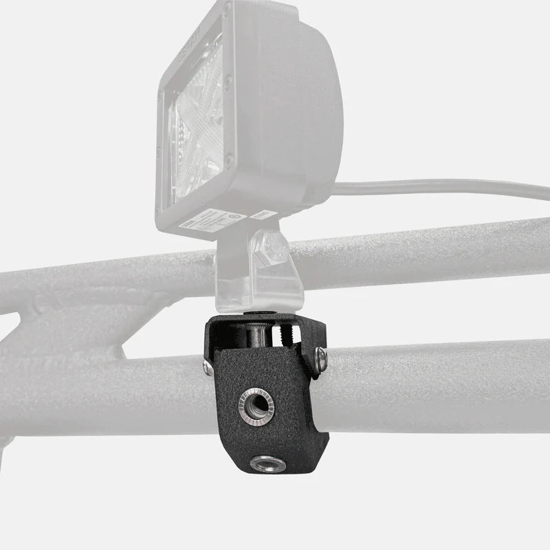 Universalhalterung mit 3 Gewindeeinsätzen (für M8 Schrauben) zur Befestigung von Scheinwerfern oder sonstigem Zubehör. Der Halter kann ohne Werkzeug mit dem Einhand Hebel befestigt werden.