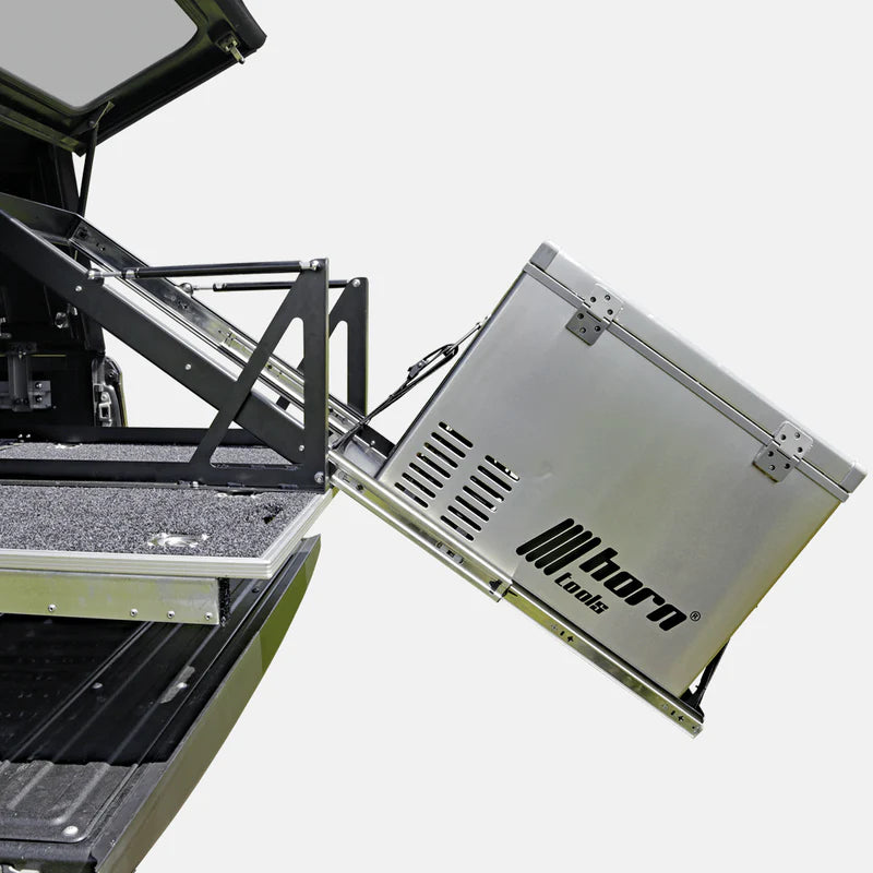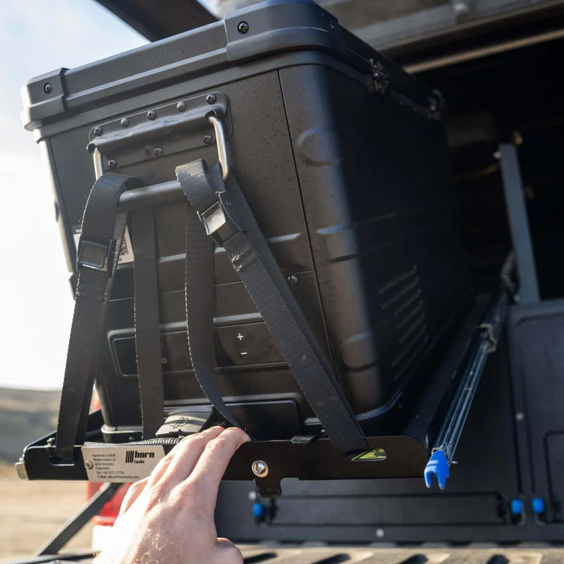 Der extrem robuste Auszug von horntools wurde extra für Kühlboxen entwickelt und macht den Zugriff auf deine Box noch schneller und einfacher. Der Auszug fasst Kühlboxen mit bis zu 79,6 x 57,4 cm Grundfläche. Mit den Zurrgurten, können die Boxen an den 4 Zurrpunkten befestigt werden.