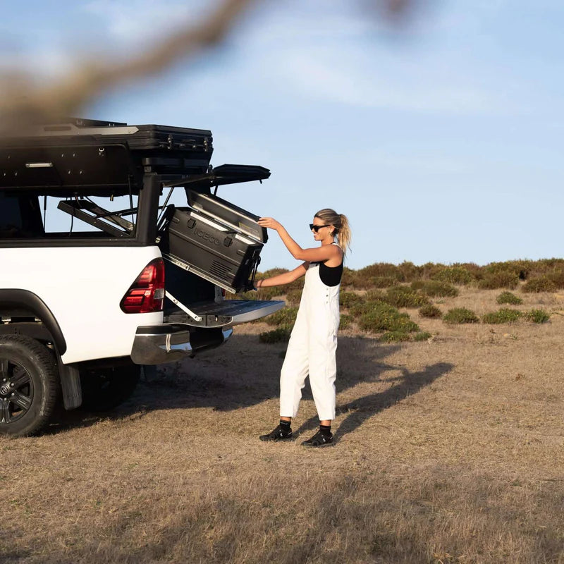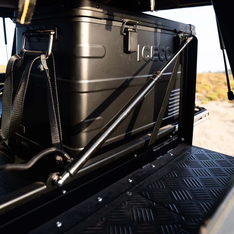Das absolute Highlight des Systems ist die Kippfunktion, so kommt man auch bei einer hohen Einbauposition leicht und sicher an den Inhalt der Kühlbox oder Transportkiste.
