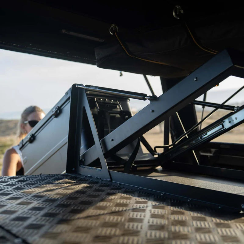 Der Rahmen wurde extra extrem robust konstruiert, damit auch eine große und gut gefüllte Kühlbox transportiert werden kann. Durch mehrere Löcher im Rahmen kann der Auszug sicher am Boden deiner Ladefläche befestigt werden.