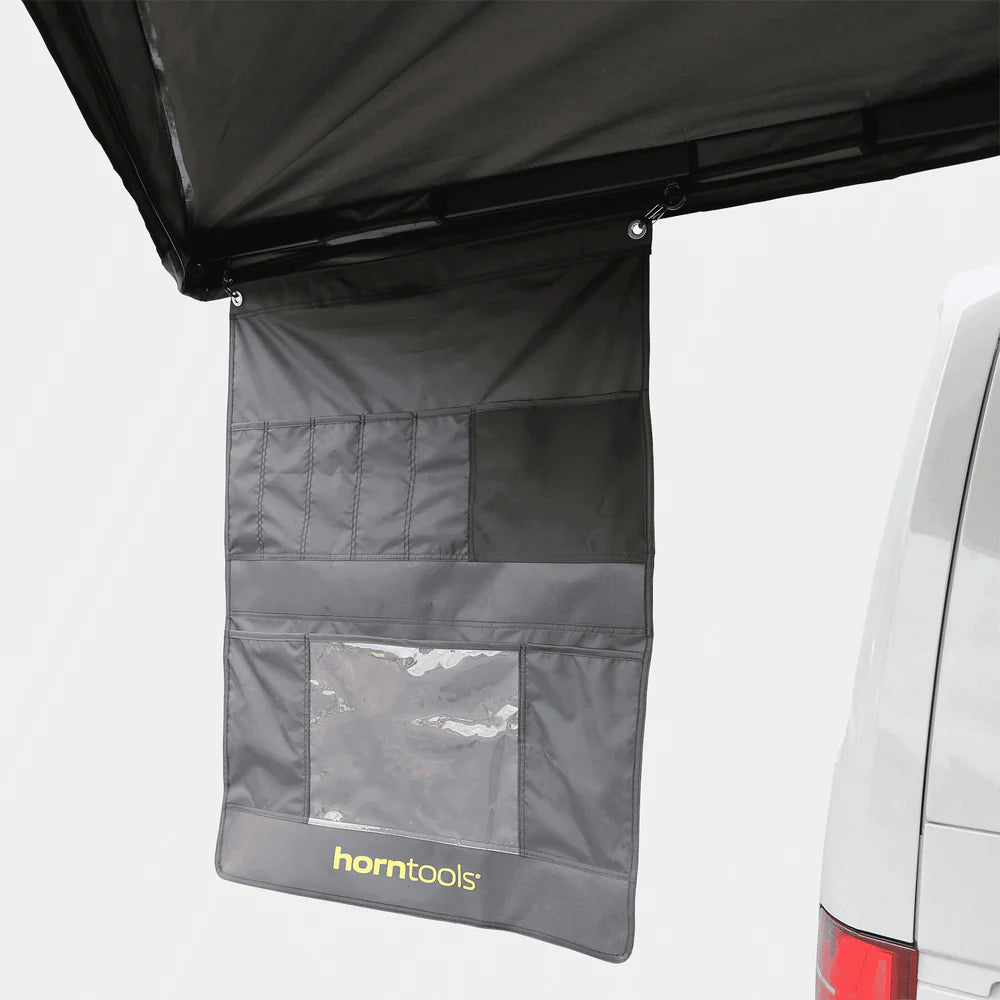 Der praktische Organizer für die Markise Horizon(180° oder 270°) kann über Karabiner und die Ringschrauben beliebig in der Nut der Markise Horizon angebracht und je nach Bedarf verschoben werden.
