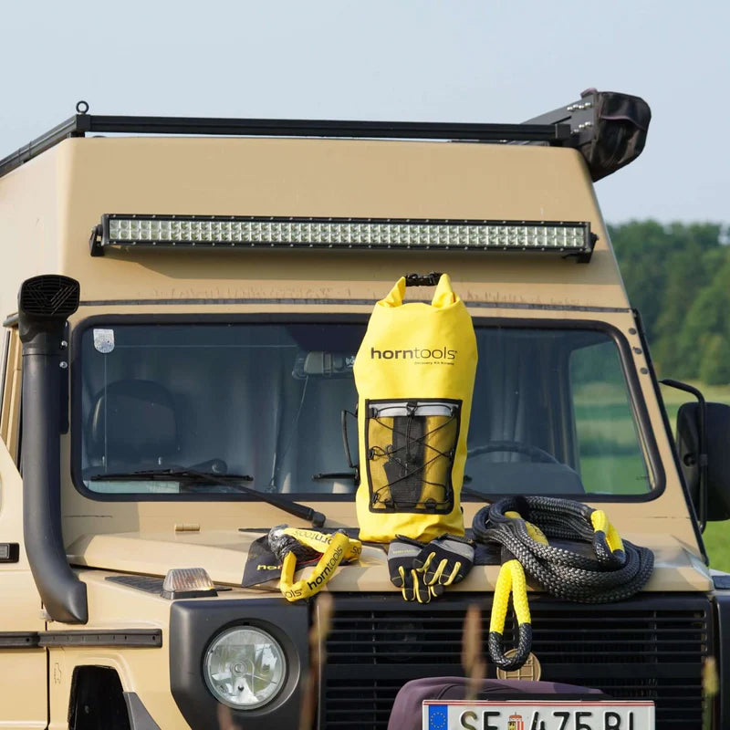 Das horntools Recovery Kit Kinetic ist ideal für Offroad-Abenteuer, bei denen die Gefahr besteht, im Gelände stecken zu bleiben. Es ermöglicht eine sichere und effiziente Bergung, indem es die Belastung auf die Fahrzeuge minimiert und gleichzeitig maximale Sicherheit für alle Beteiligten gewährleistet.
