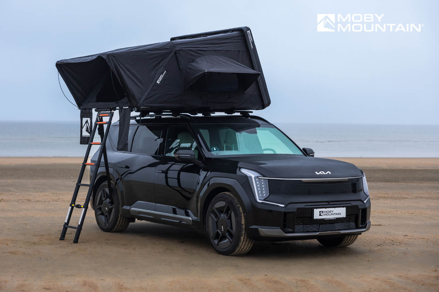 Die Hardshell-Box hat eine gute Größe und passt auf das Dach der meisten Kombis oder SUVs. Das Schlaue ist, dass das Zelt über die Seite des Autos ausgeklappt wird, so dass Sie eine größere Liegefläche erhalten als bei den meisten anderen Dachzelten.