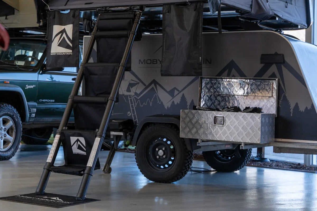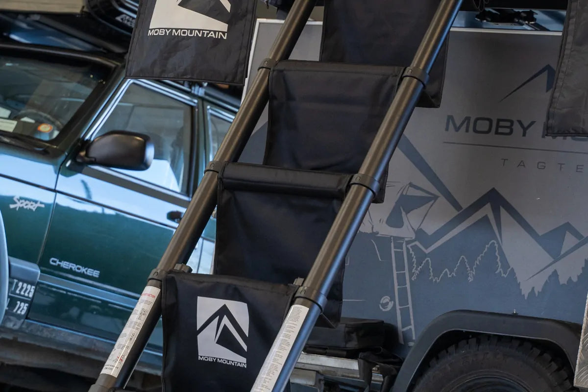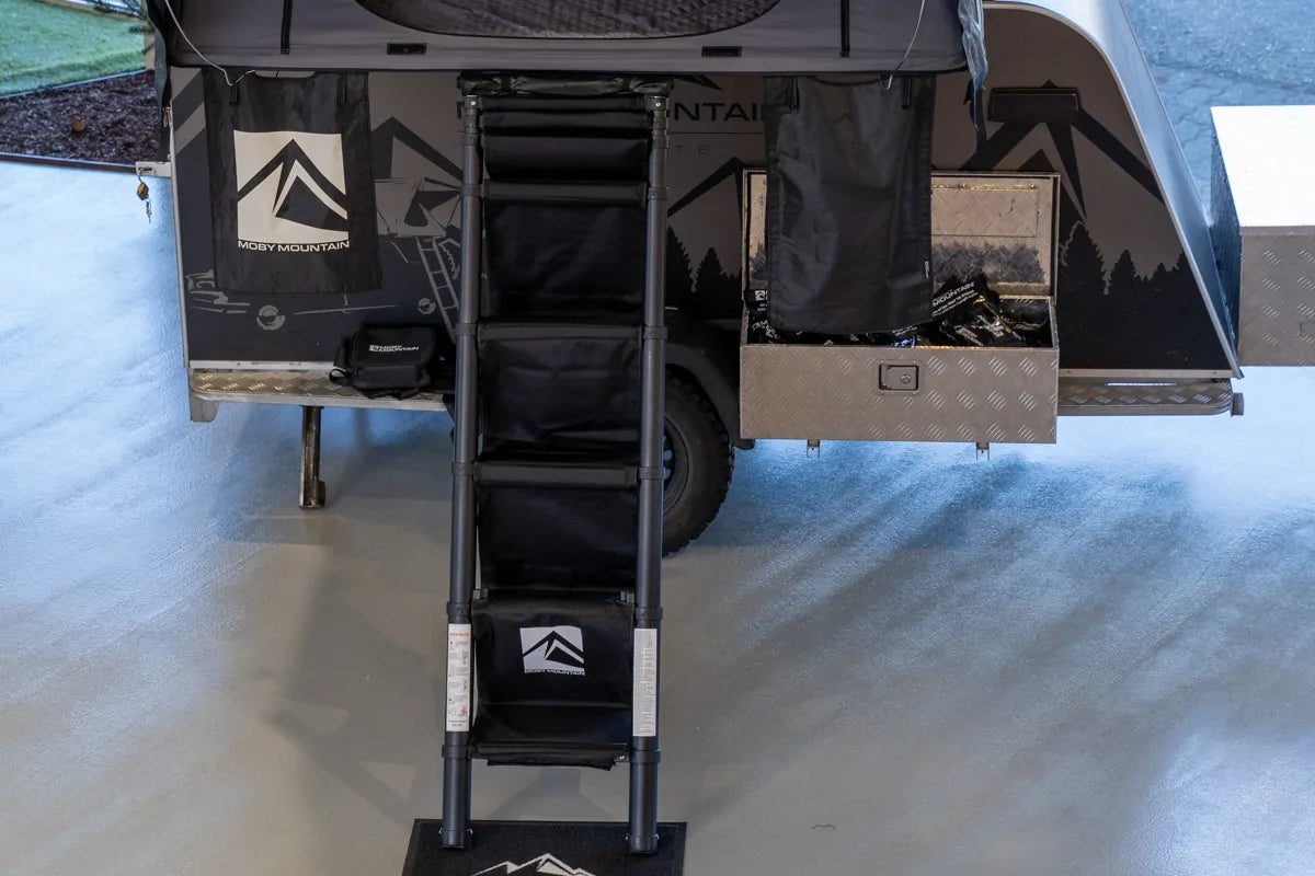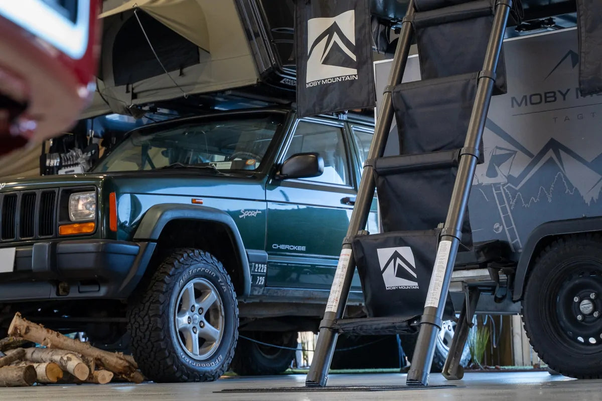 Die Soft Step Leiterabdeckung macht das Betreten der Leiter weich und angenehm, sogar mit bloßen Füßen. Soft Step ist ideal für Familien mit Kindern, da die breiteren Stufen es den Kleinen erleichtern, selbstständig in das Dachzelt hinein- und herauszuklettern.