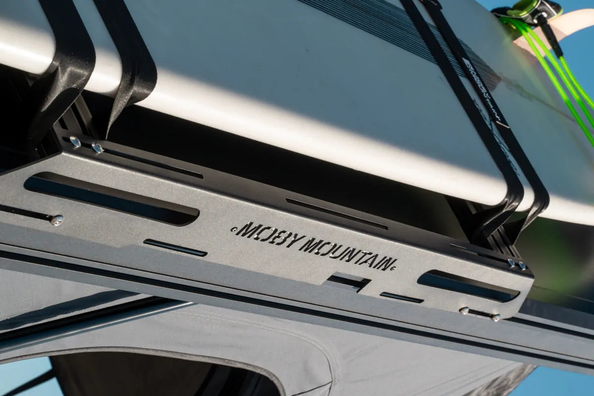 Das laod rack ist kompatible mit dem SWELL M (Nicht kompatibel mit der Peak-Serie) und ermöglicht die Montage von Fahrrädern, Kajaks, Dachboxen, Skiern oder Ähnlichem auf dem Dachzelt. Unser SWELL-Lastenträger lässt sich einfach in die Schienen des SWELL M-Zeltes an der Außenseite der Hartschale montieren. Alles, was Sie für die Montage des SWELL-Lastenträgers benötigen, ist im Set enthalten, einschließlich Spezialhalterungen, tragender Balken, Schrauben und Muttern. Das Set bietet ein hohes Maß an Flexibilität, da die Schienen an der Seite des SWELL M es ermöglichen, das Trägersystem nach vorne oder hinten auf dem Zeltdach zu verschieben.