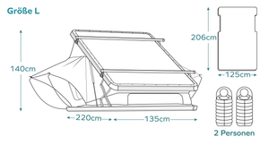 - Außenmaße geschlossen: 220cm x 135cm x 18cm