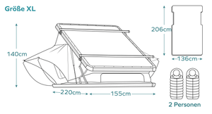 - Außenmaße geschlossen: 220cm x 155cm x 18cm