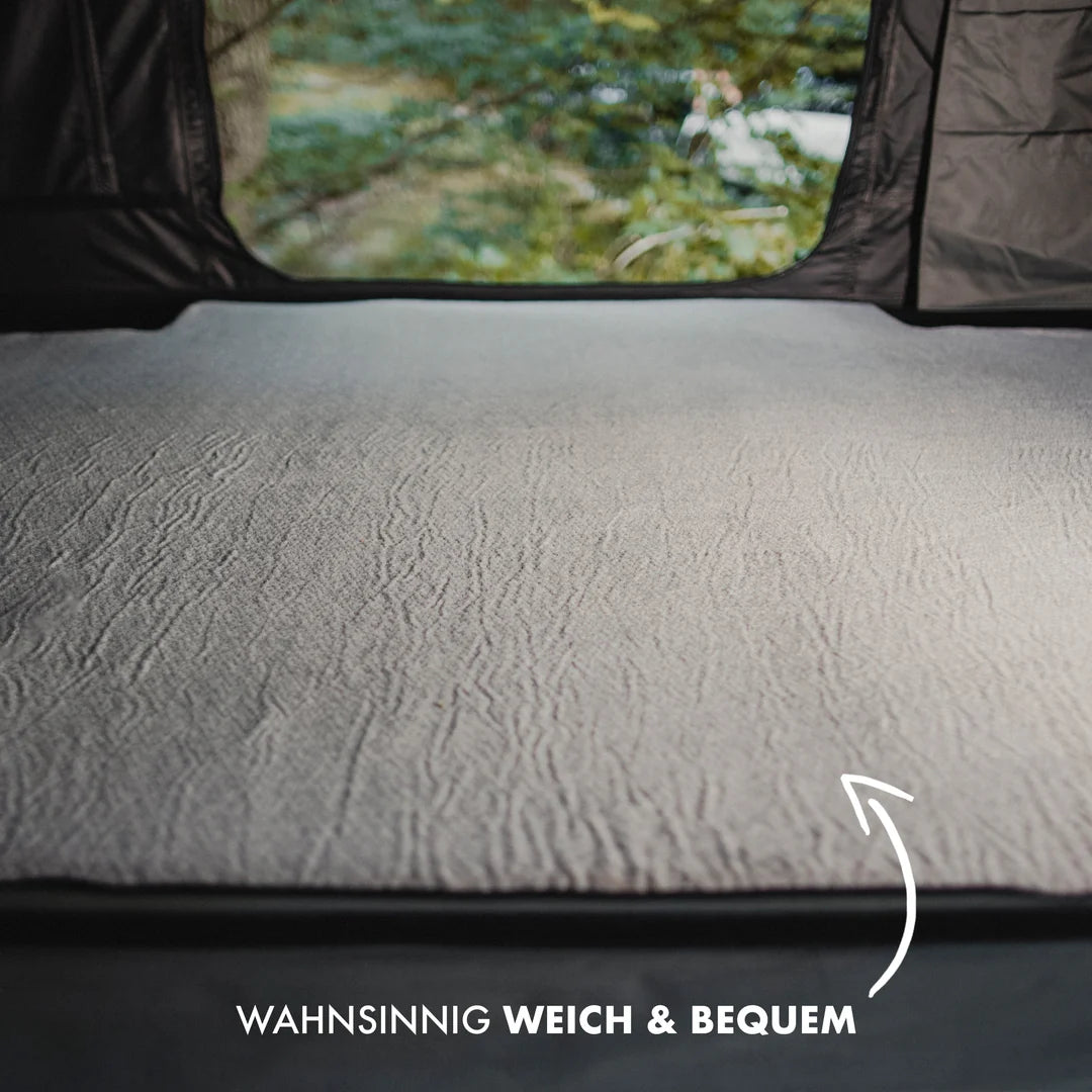- 4cm dicker Matratzentopper (bei Alu-Loft & Family-Loft 3cm dick) sorgt für noch erholsamere Nächte in deinem Dachzelt