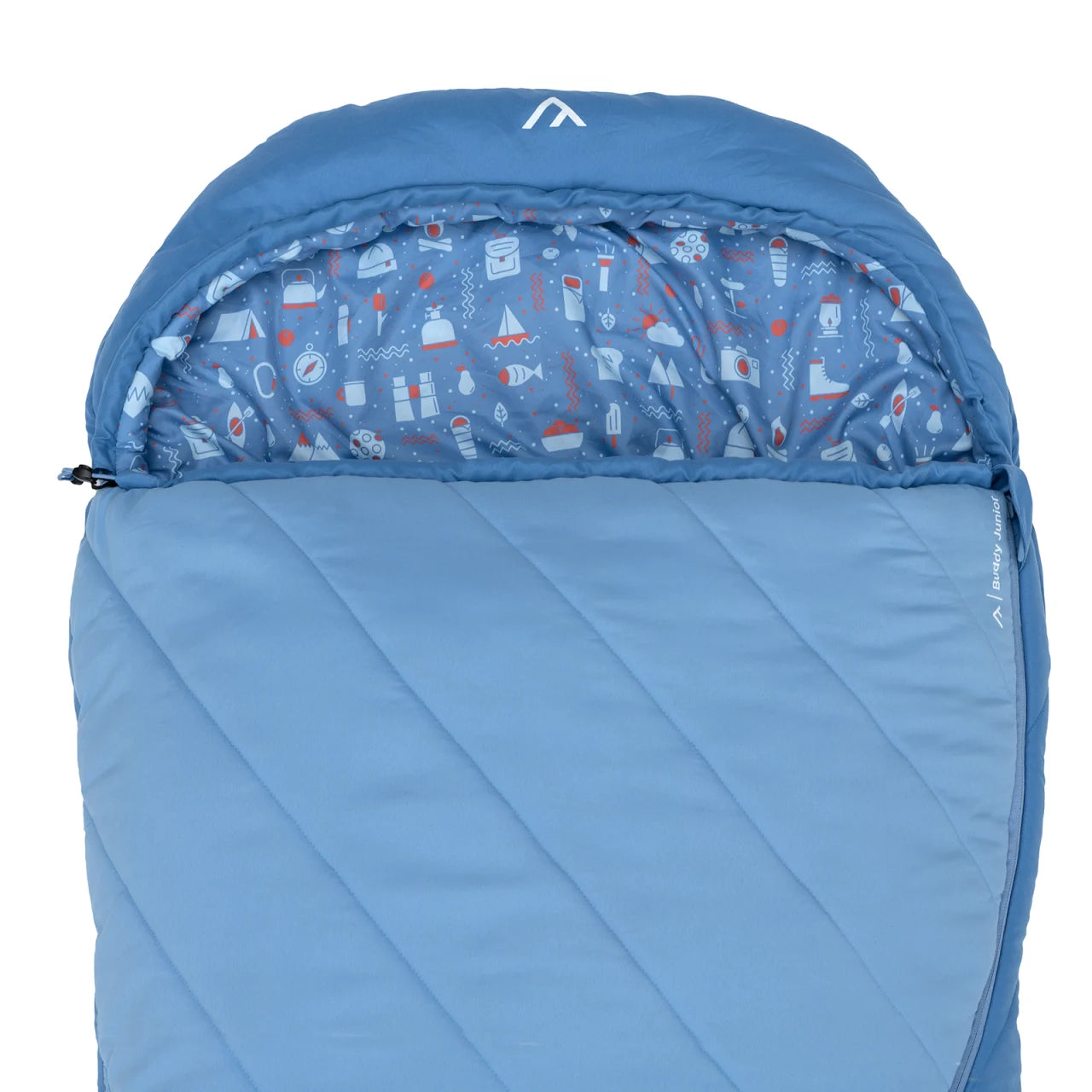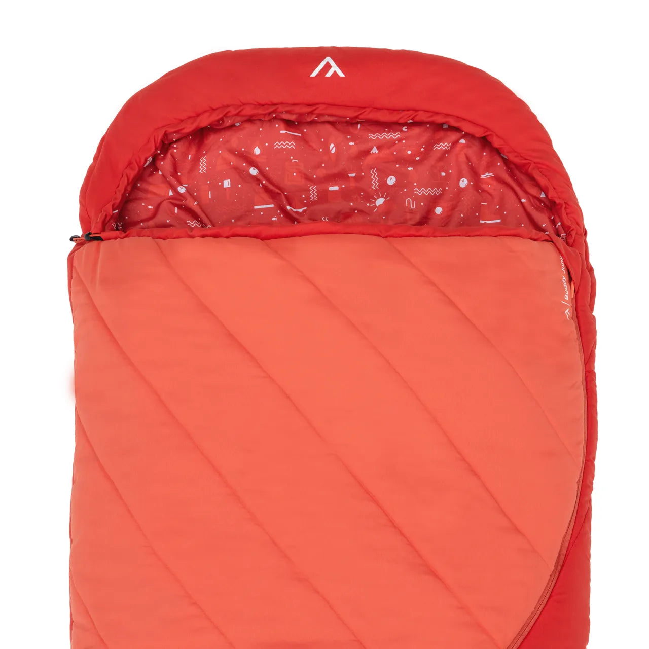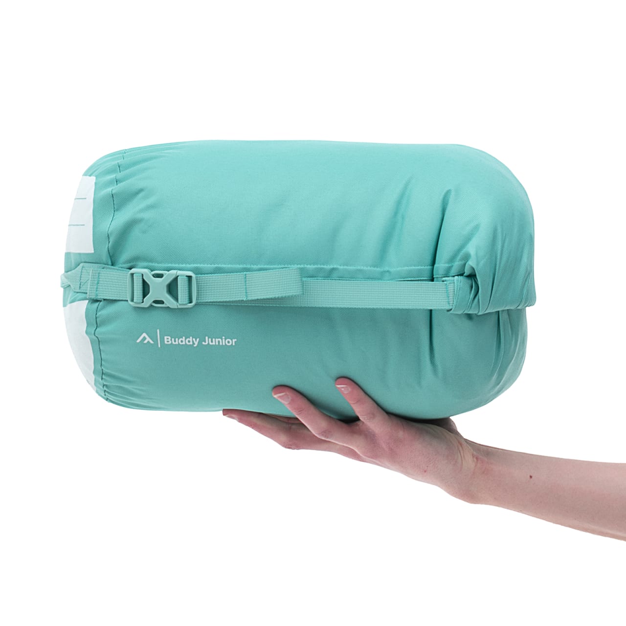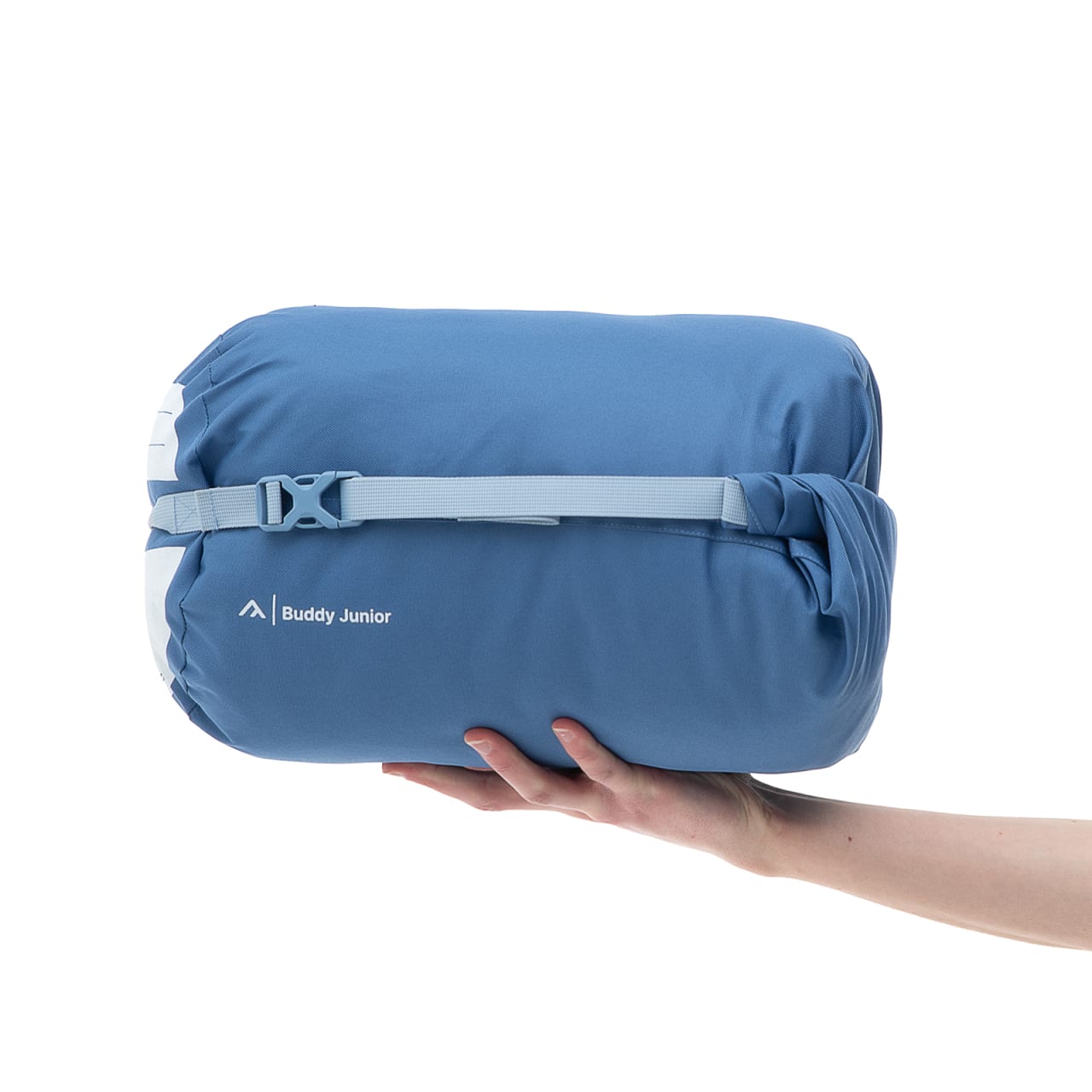 Damit wertvolle Körperwärme im Buddy Junior bliebt, ist der Schlafsack im Verhältnis zum Körper an den Schultern enger geschnitten. Im Fuß- und Beinbereich ist der Schlafsack großzügig geschnitten, damit auch Kinder mit unruhigem Schlaf bequem liegen können.