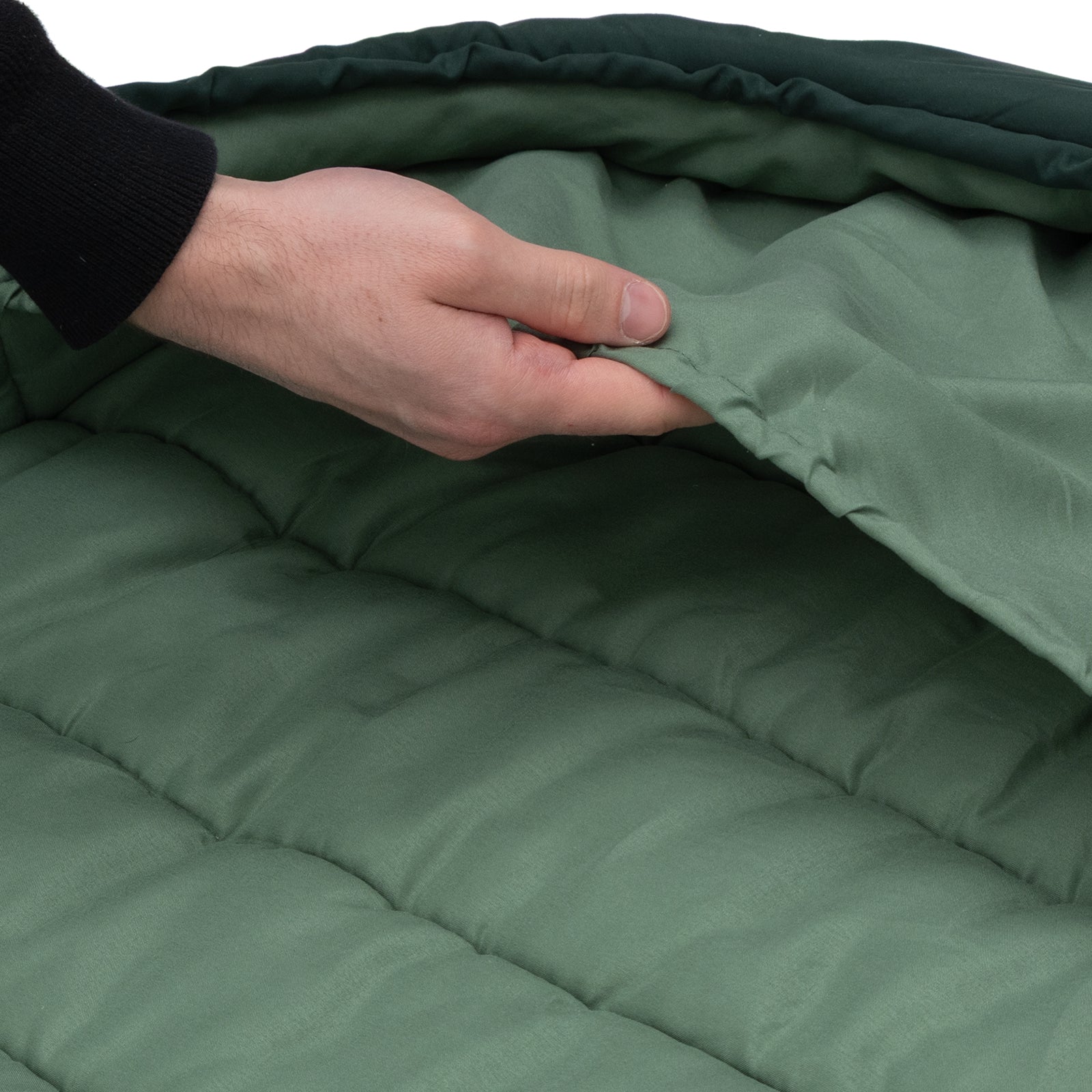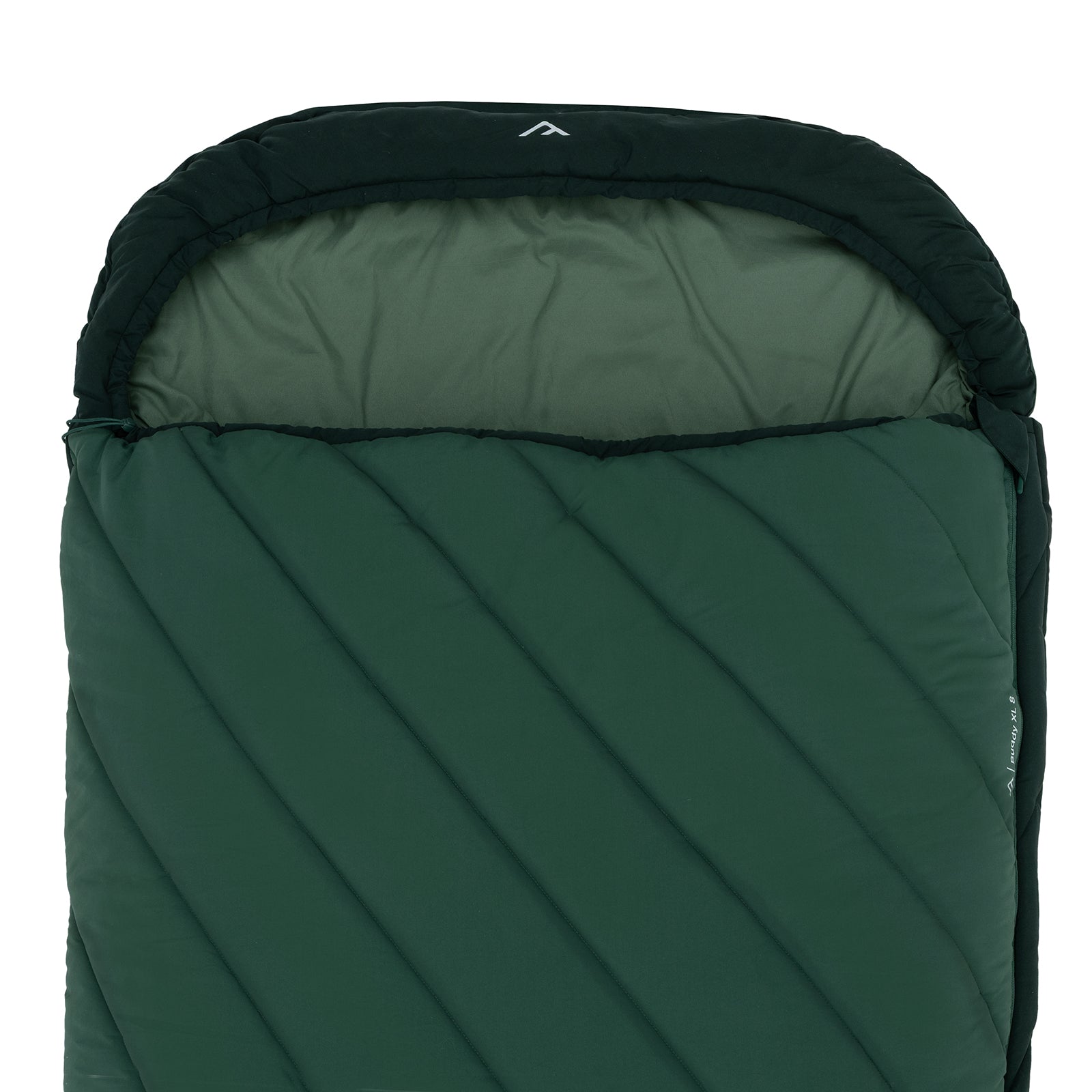 Weicher, eiförmiger Schlafsack für 3 Jahreszeiten mit einer Temperaturempfehlung von 8 – 25°C aus raschelfreiem und wasserabweisendem Material für große Personen.
