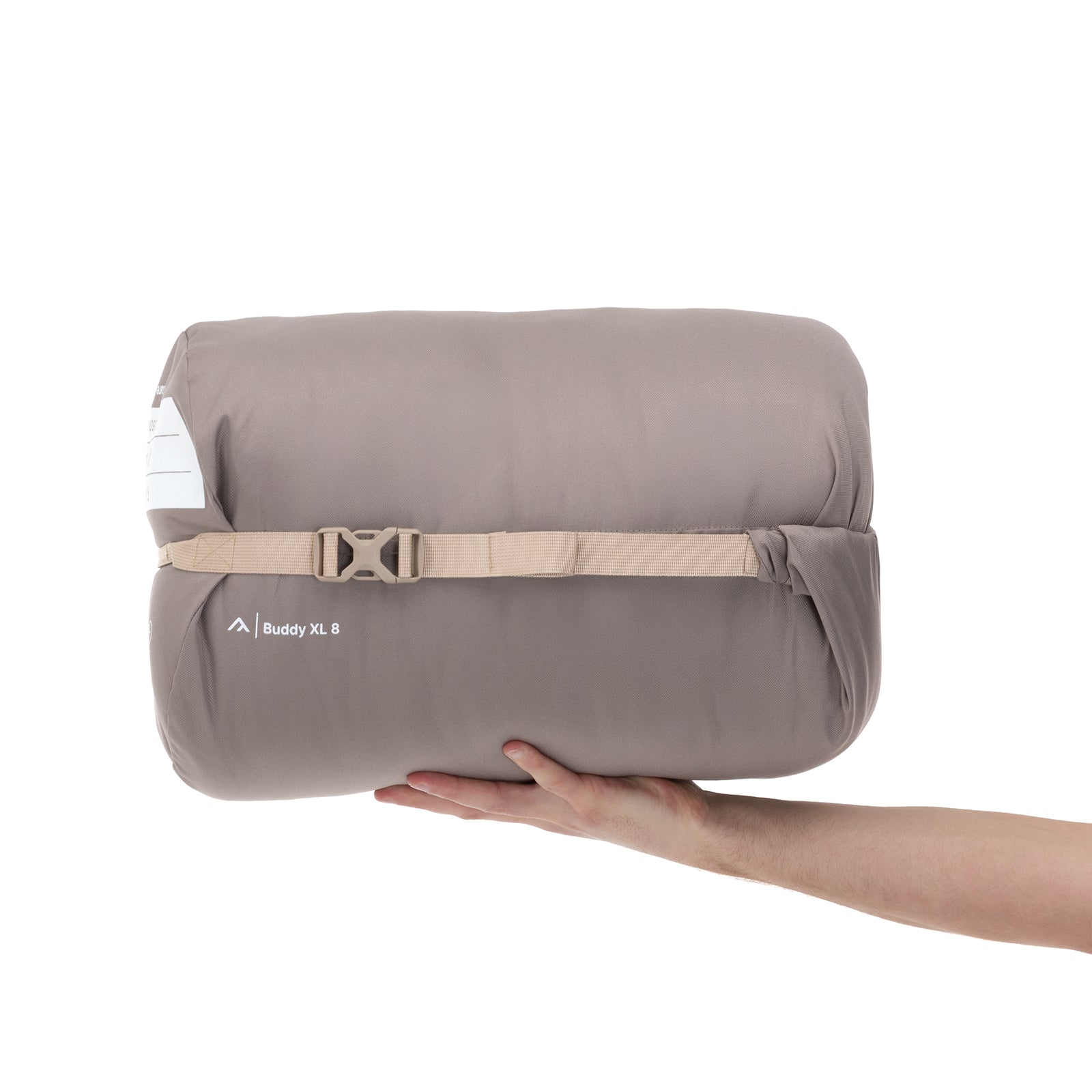 Dank seiner besonderen Form hält dich dein Buddy 8 von 8–25 °C im Frühling, Sommer und Herbst komfortabel warm und bietet zusätzlich viel Bewegungsfreiheit für bequemes Liegen – oder Sitzen!