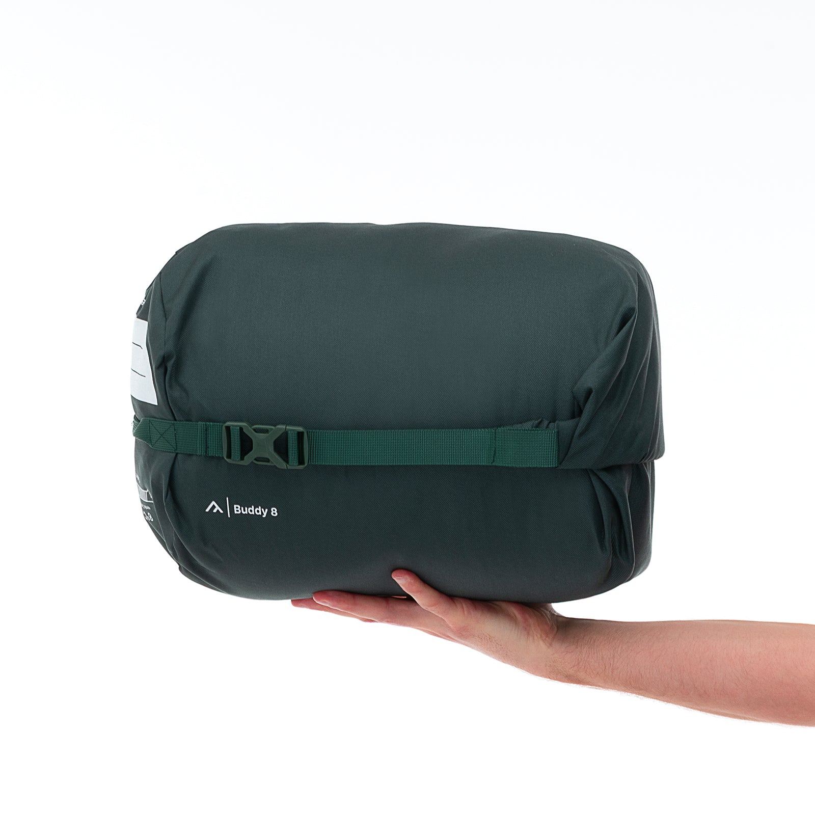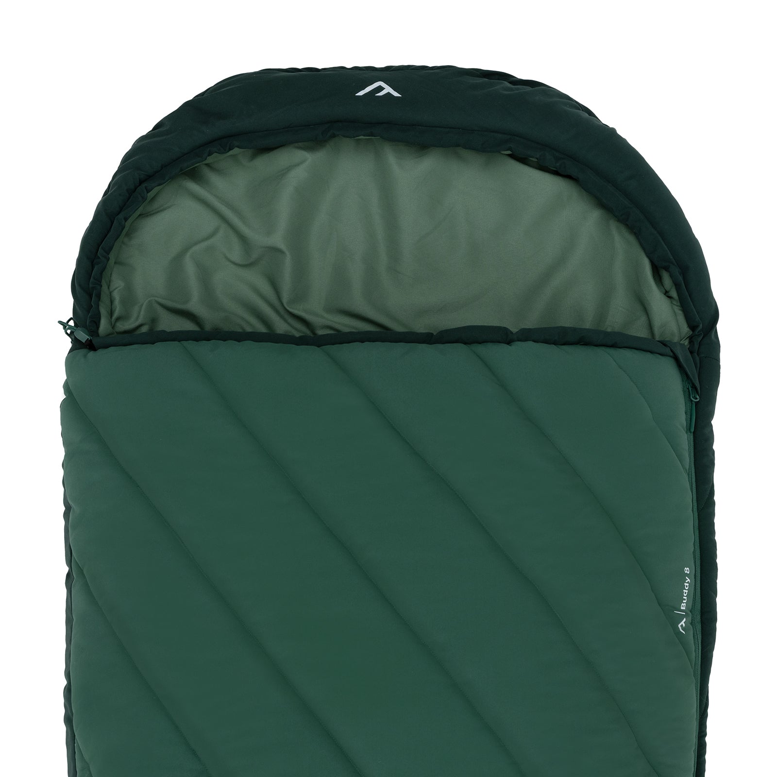 Durch den quer verlaufenden Reißverschluss gibt der Buddy 8 genug Platz, um einfach und ohne Probleme in den 3 Jahreszeiten-Schlafsack zu steigen.