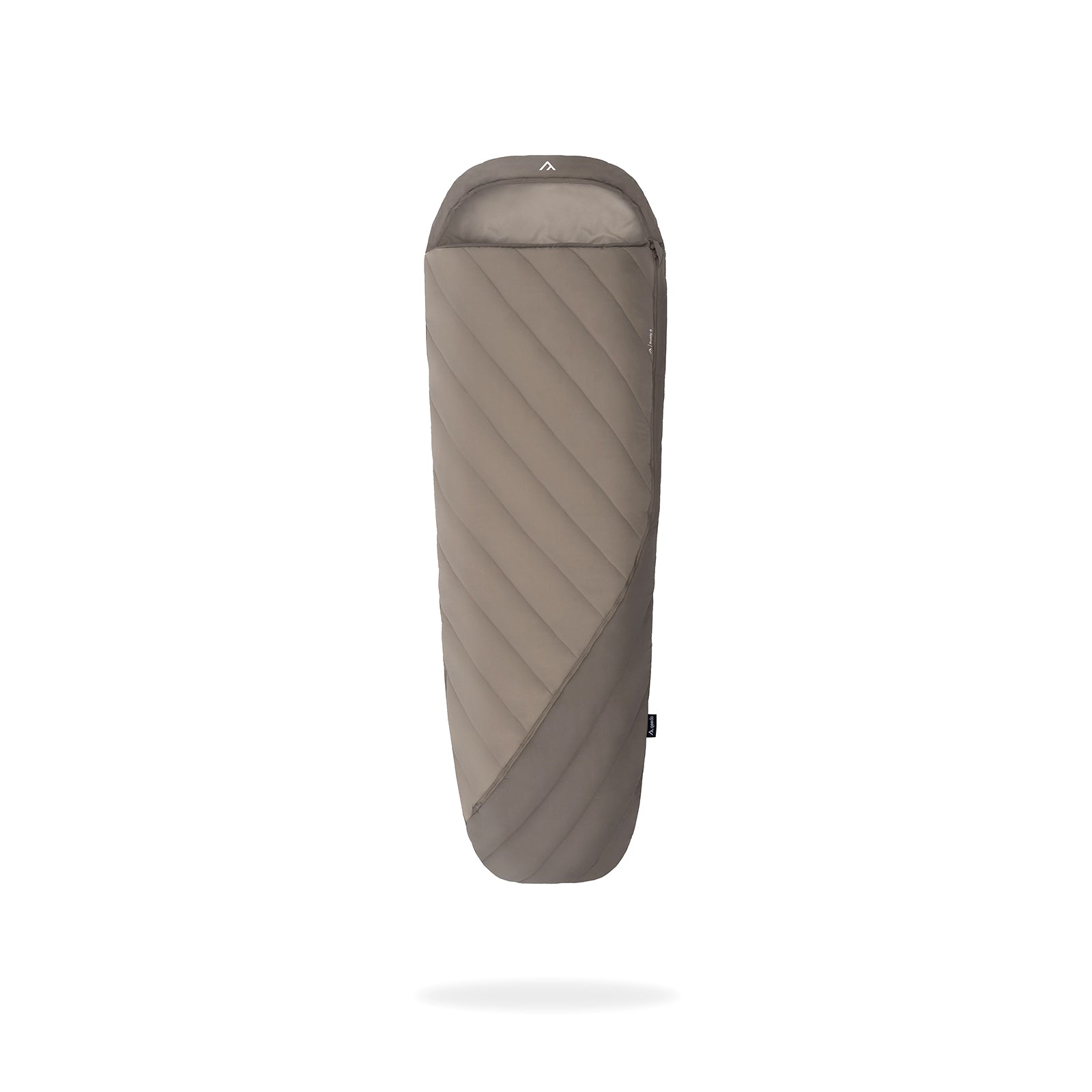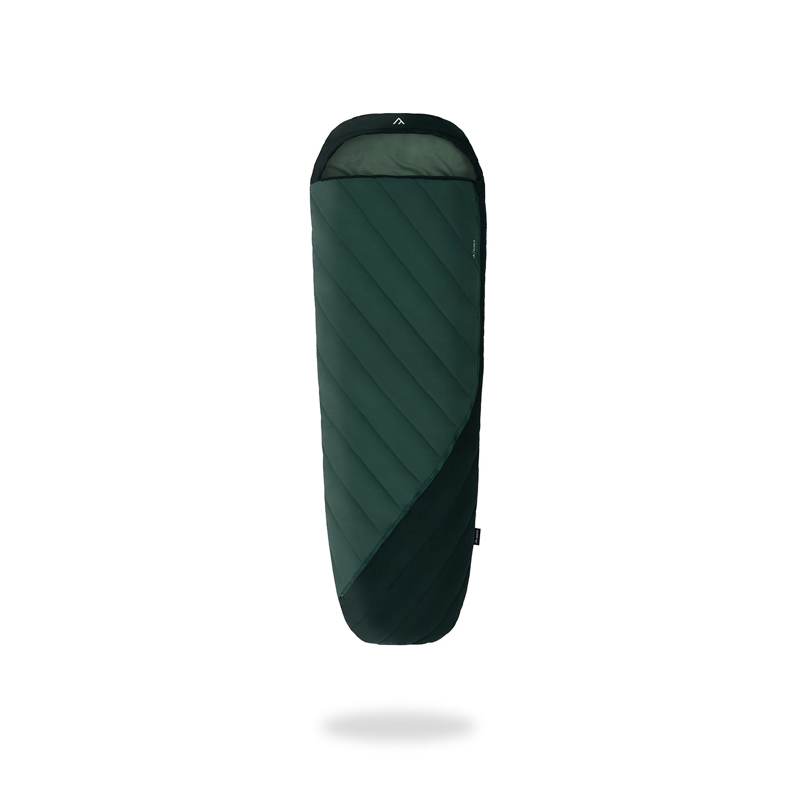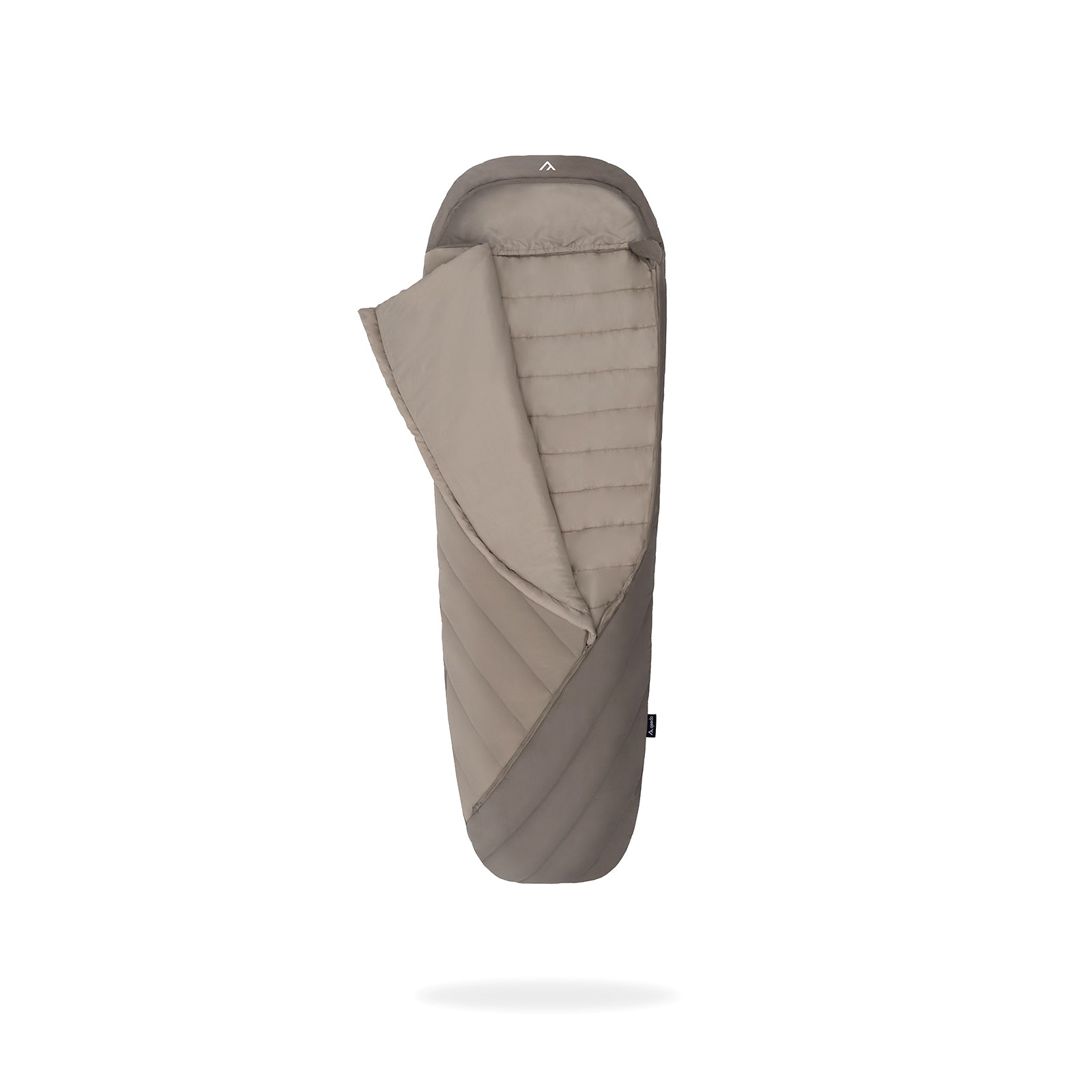 Form folgt Funktion – wortwörtlich. Um deine Körperwärme ideal zu isolieren schmiegt sich der Schlafsack eng in einer Ei-Förmigen Ovalen an deinen Körper an während deine Bewegungsfreiheit nicht eingeschränkt wird.