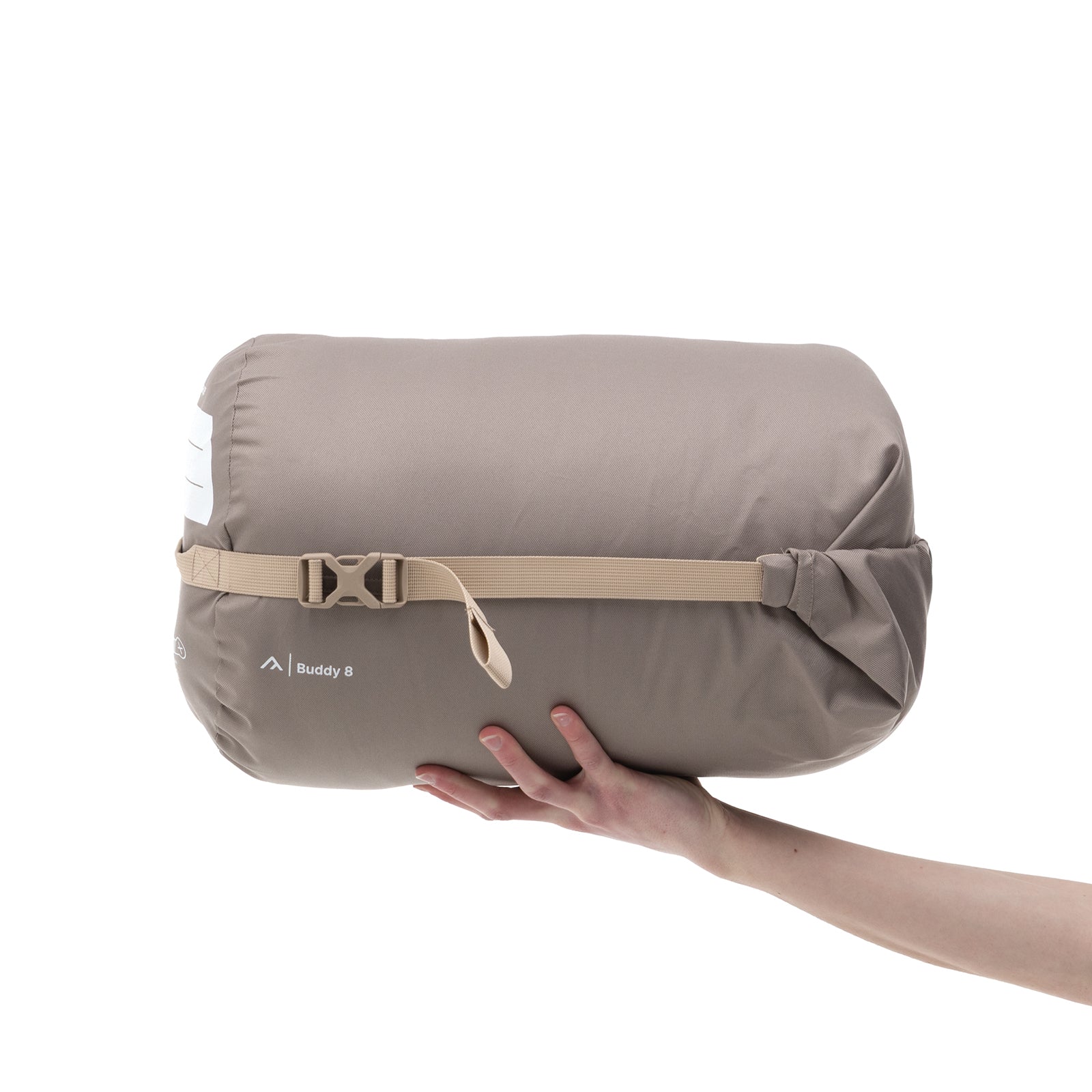 Dank seiner besonderen Form hält dich dein Buddy 8 von 8–25 °C im Frühling, Sommer und Herbst komfortabel warm und bietet zusätzlich viel Bewegungsfreiheit für bequemes Liegen – oder Sitzen!