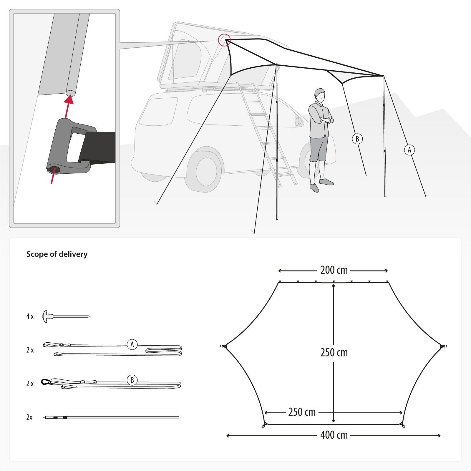 Das flexible Tarp für alle qeedo Dachzelte für mehr Schutz vor Sonne, Wind & Regen.
