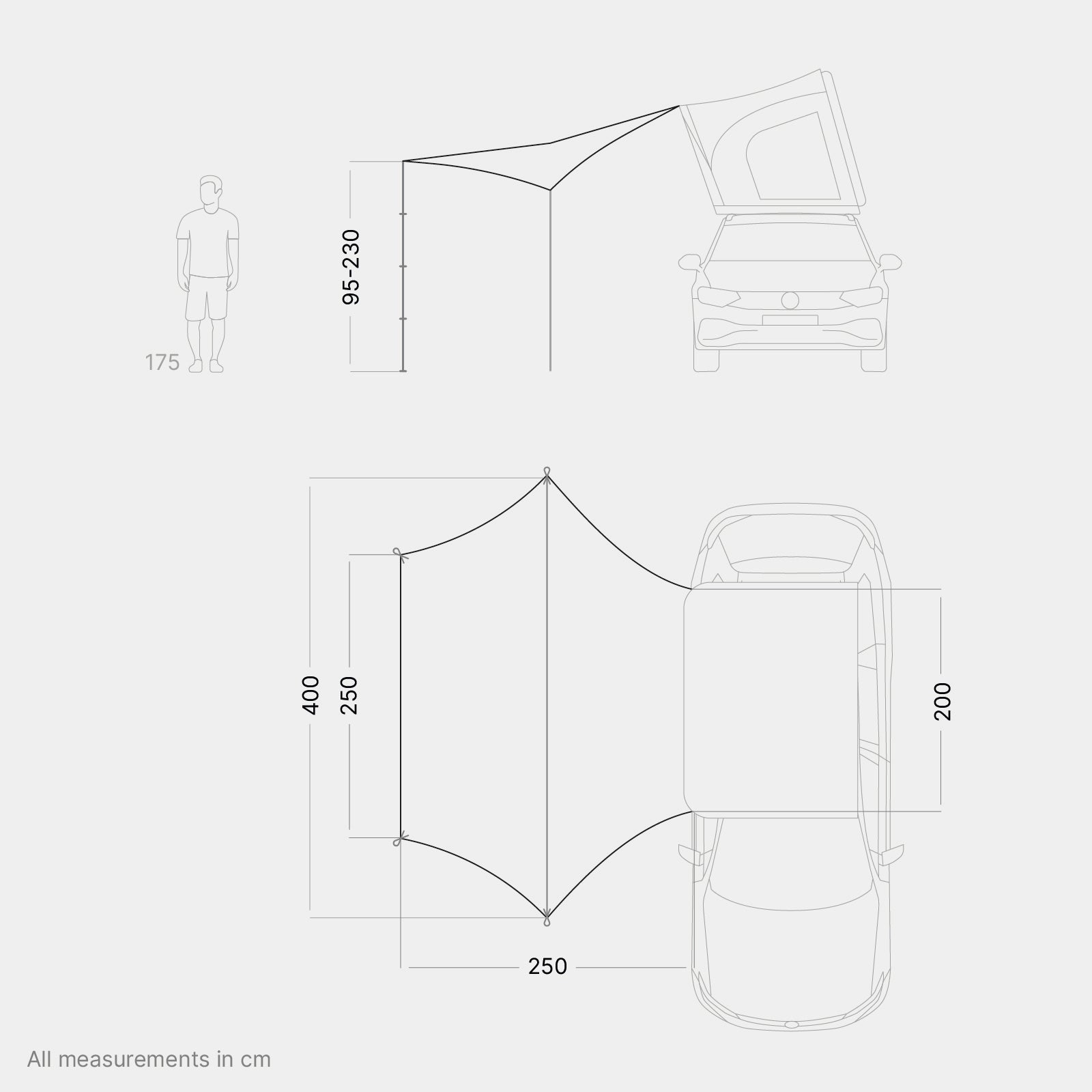 Sonne und Regen haben keine Chance! Mit dem Freedom Tarp kannst du es dir vor deinem Dachzelt gemütlich machen, ohne einen Sonnenbrand zu bekommen oder Nass zu werden.
