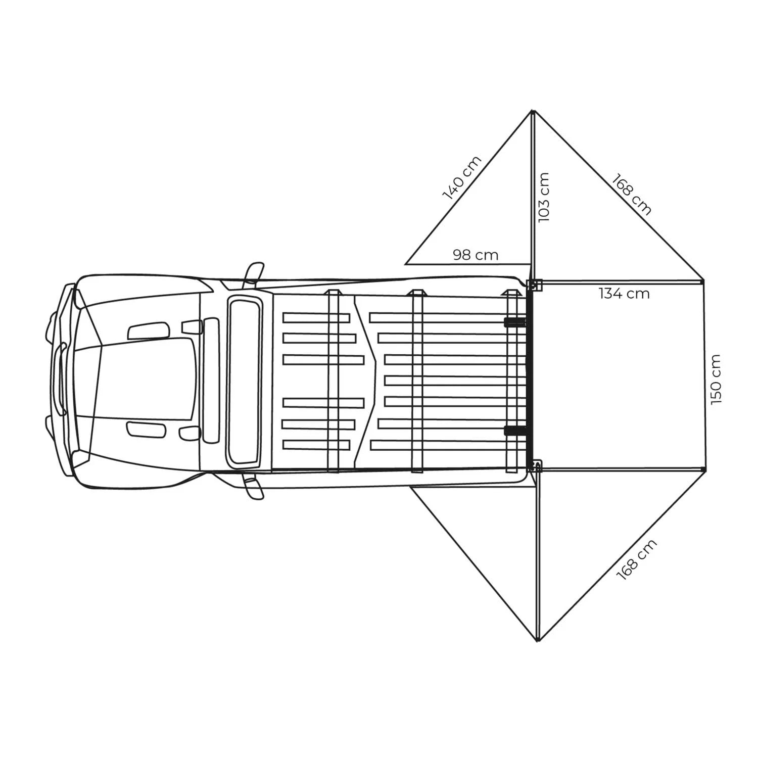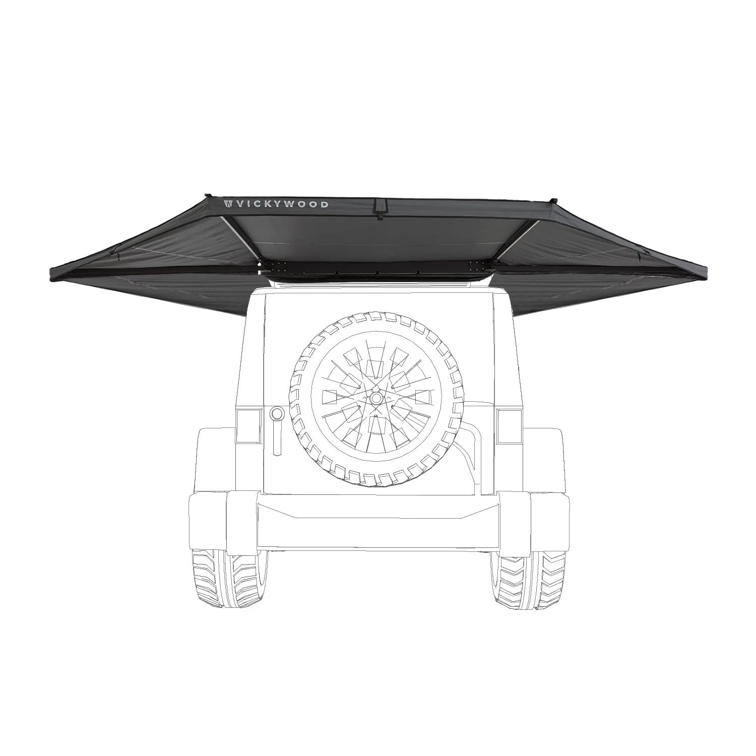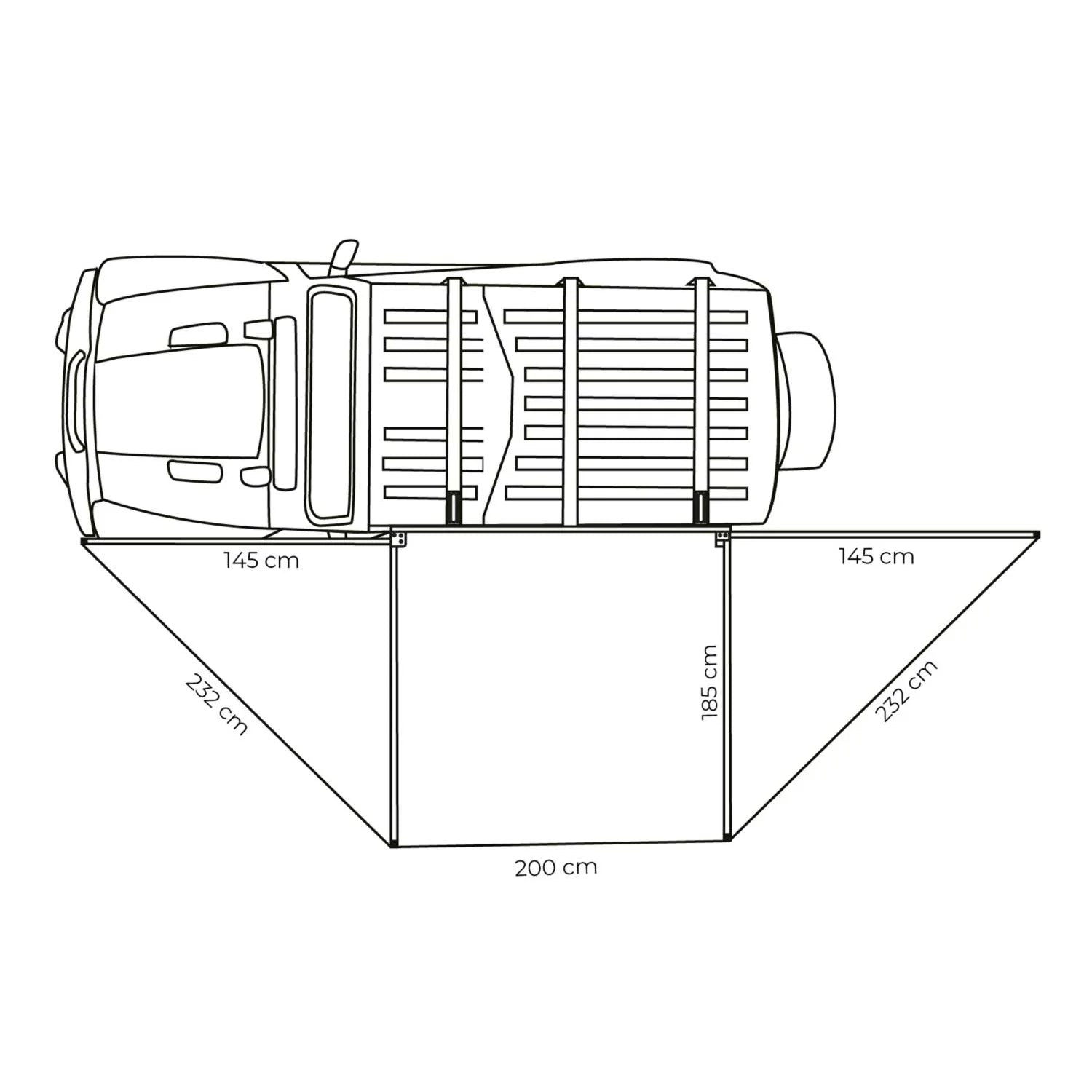 Die 180° Markise LEAF von VICKYWOOD ist dein zuverlässiger Begleiter für Outdoor-Abenteuer. Ob am Camper, Van oder SUV – sie bietet großzügigen Schatten neben deinem Fahrzeug und schützt effektiv vor Sonne und Regen. Dank robustem Material, LED-Beleuchtung und einfacher Montage ist sie die ideale Wahl für Reisende, die Flexibilität und Komfort suchen.