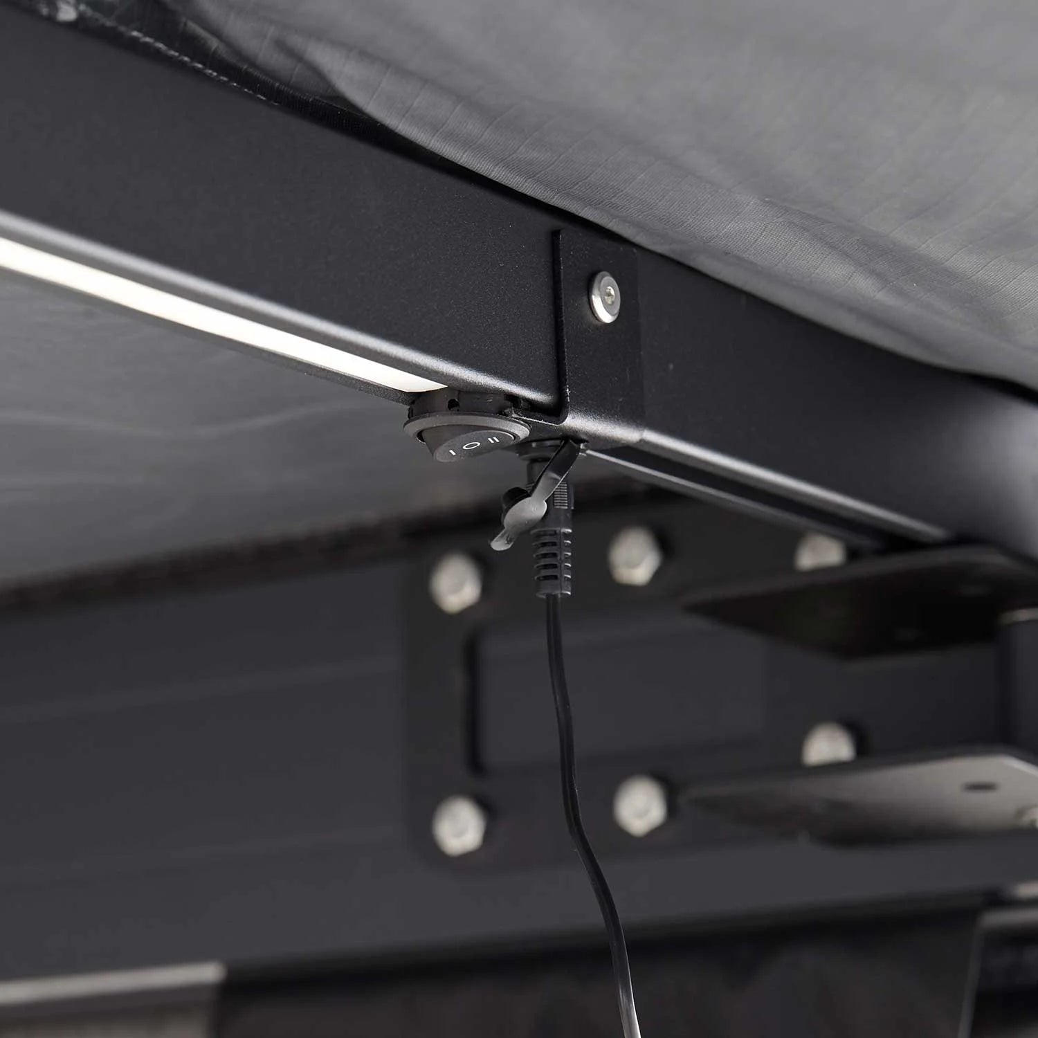 Mit der 180° Markise LEAF sicherst du dir maximalen Komfort bei minimalem Aufwand. Ob beim spontanen Wochenendtrip oder auf großer Tour – sie schützt dich zuverlässig vor Sonne und Regen, ist leicht montiert und dank LED-Beleuchtung auch abends ein echtes Highlight.