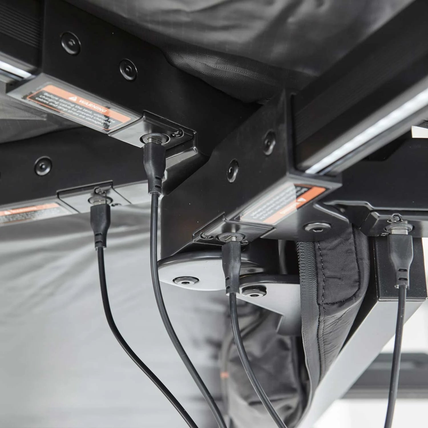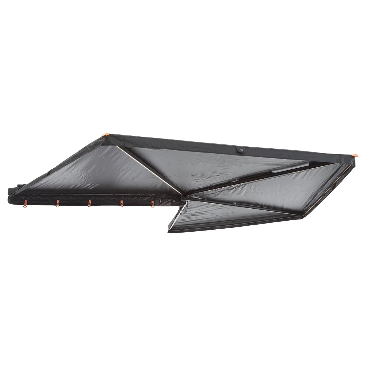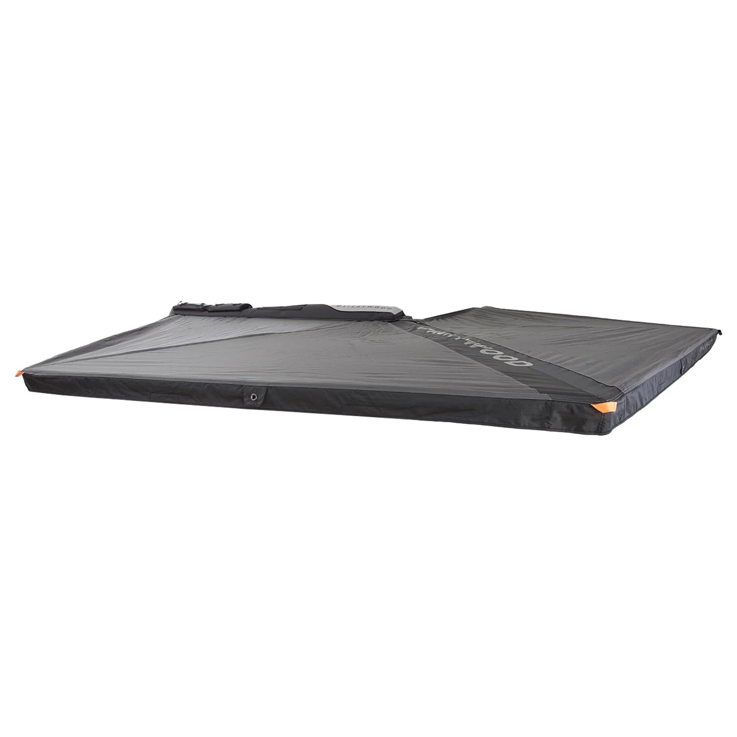 Der eingesetzte Graphen-beschichtete Stoff ist extrem robust: wasserdicht (5.000 mm), UV-beständig, verschleiß- und knitterfest, antibakteriell und alterungsresistent. Damit ist die Softcover Markise ein langlebiger Begleiter für Camping, Overlanding und urbane Abenteuer.