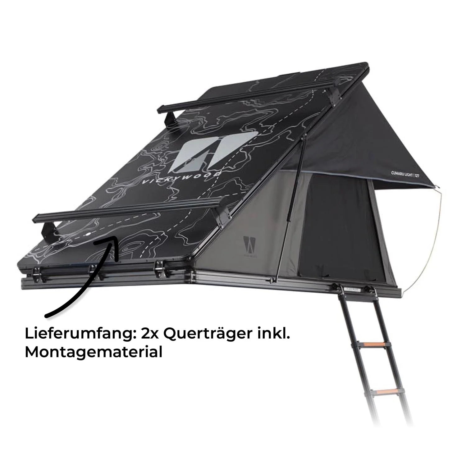 Passende Querträger für das Dachzeltmodell CUMARU LIGHT. Das Dachträger-System ist stufenlos einstellbar und ermöglicht eine zusätzliche Belastung von bis zu 100 kg. Ideal zum Transport von Fahrrädern, Surfboards, Kajaks, uvm.