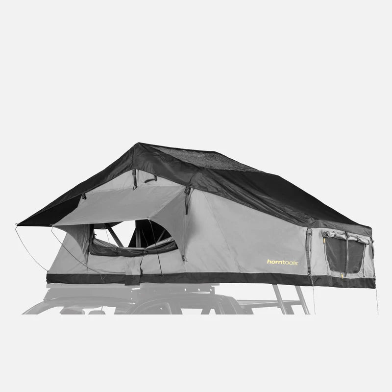 Der Eingang, die Seitenfenster und die zwei Dachfenster sind mit Mückennetzen ausgestattet und können alternativ auch komplett geschlossen werden. Zusätzlich verfügt der Innenraum des Dachzelts über 12 Seitentaschen für genügend Stauraum. Eine praktische Schuhtasche (zwei für das 220 cm Dachzelt) ist ebenfalls im Lieferumfang enthalten, um keinen Dreck mit ins Dachzelt zu ziehen.