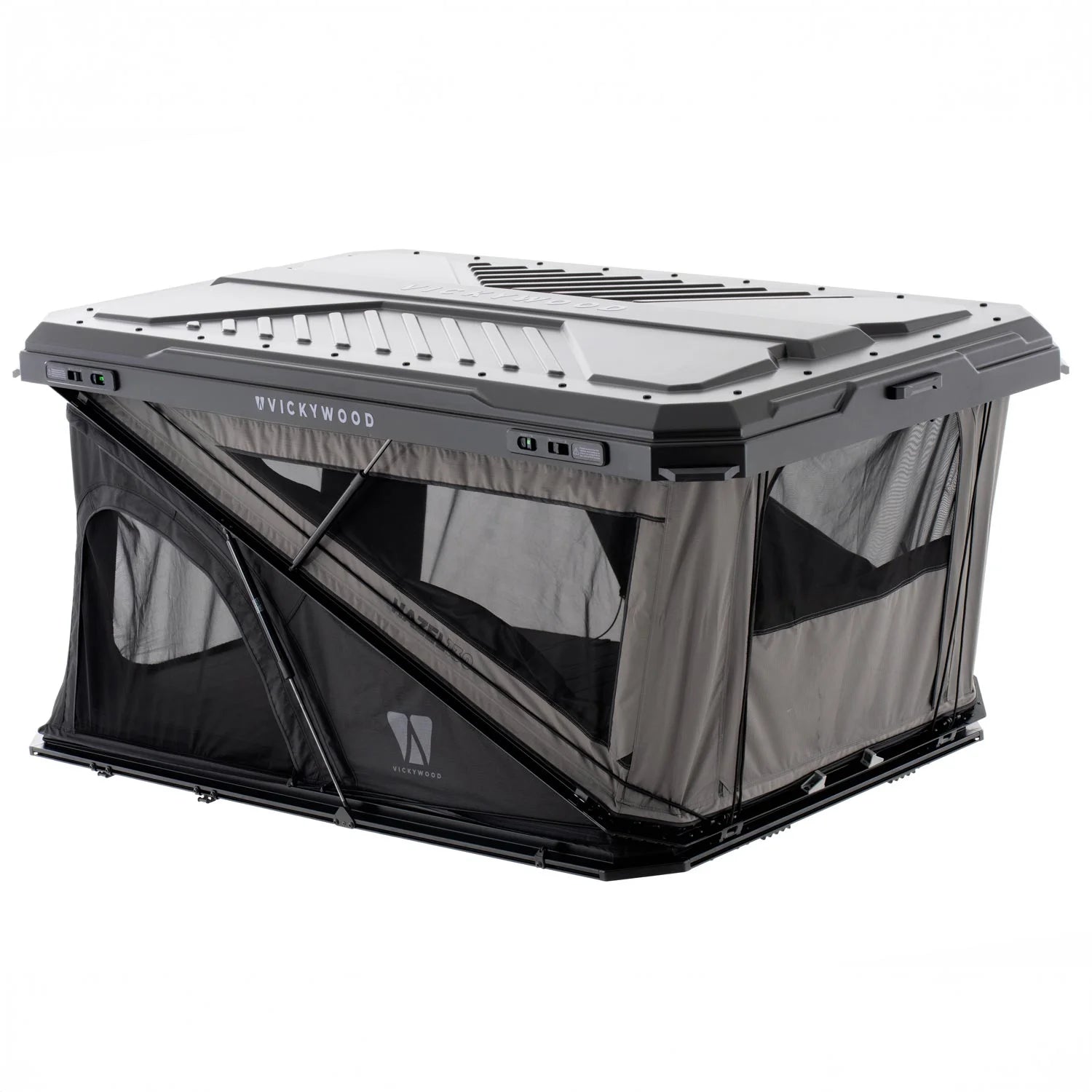 Das VICKYWOOD HAZEL 130 vereint die Vorteile eines klassischen Triangel-Zelts mit der Funktionalität eines Pop-Up-Systems. Die leichte ABS-Hartschale, kombiniert mit zwei Gasdruckfeder-Paaren ermöglicht ein ultraschnelles Öffnen ohne Kraftaufwand – für alle, die beim Reisen keine Kompromisse machen wollen.