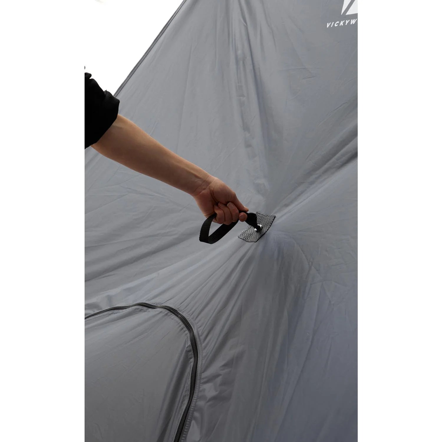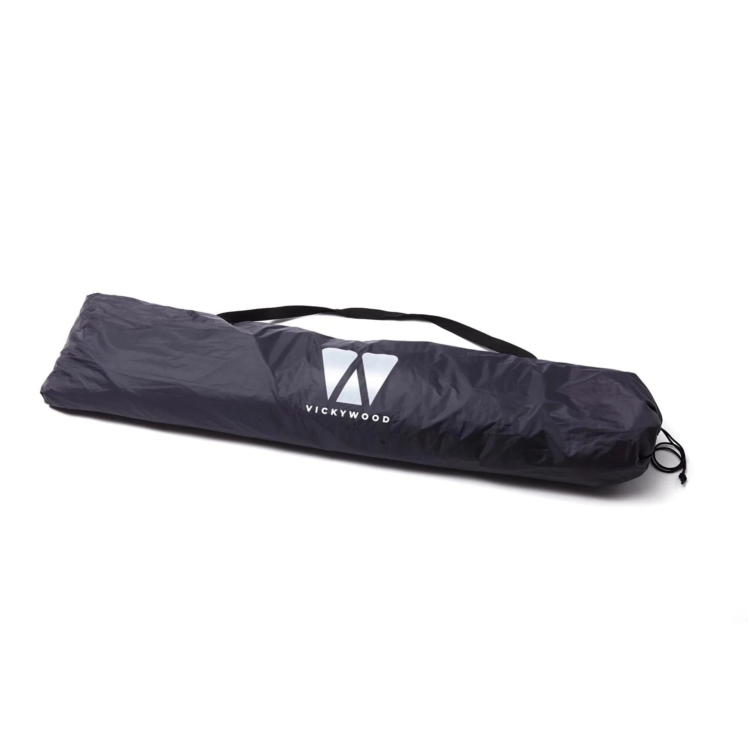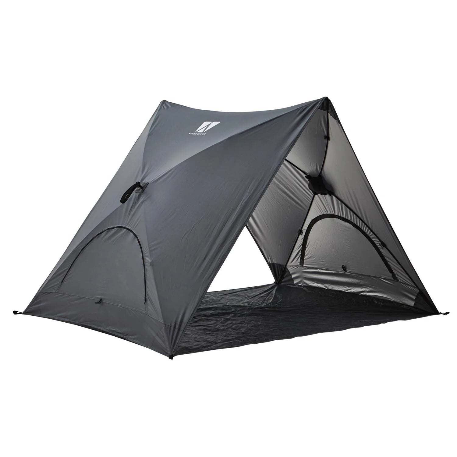 Dank dem dünnen, aber stabilen Polyester-Gewebe und den Fiberglas-Stangen wiegt das Zelt nur leichte 2,75 kg. Die V-Form verleiht zusätzliche Stabilität und sorgt für Regen-, Sonnen- und Windschutz. Zusammengefaltet und in der praktischen Tragetasche verstaut, weist das Zelt nur noch eine Größe von 115 x 12 x 12 cm auf und kann dadurch unkompliziert überall mit hingenommen werden. Perfekt für einen Strandtag, ein Picknick im Park oder einen Campingausflug.