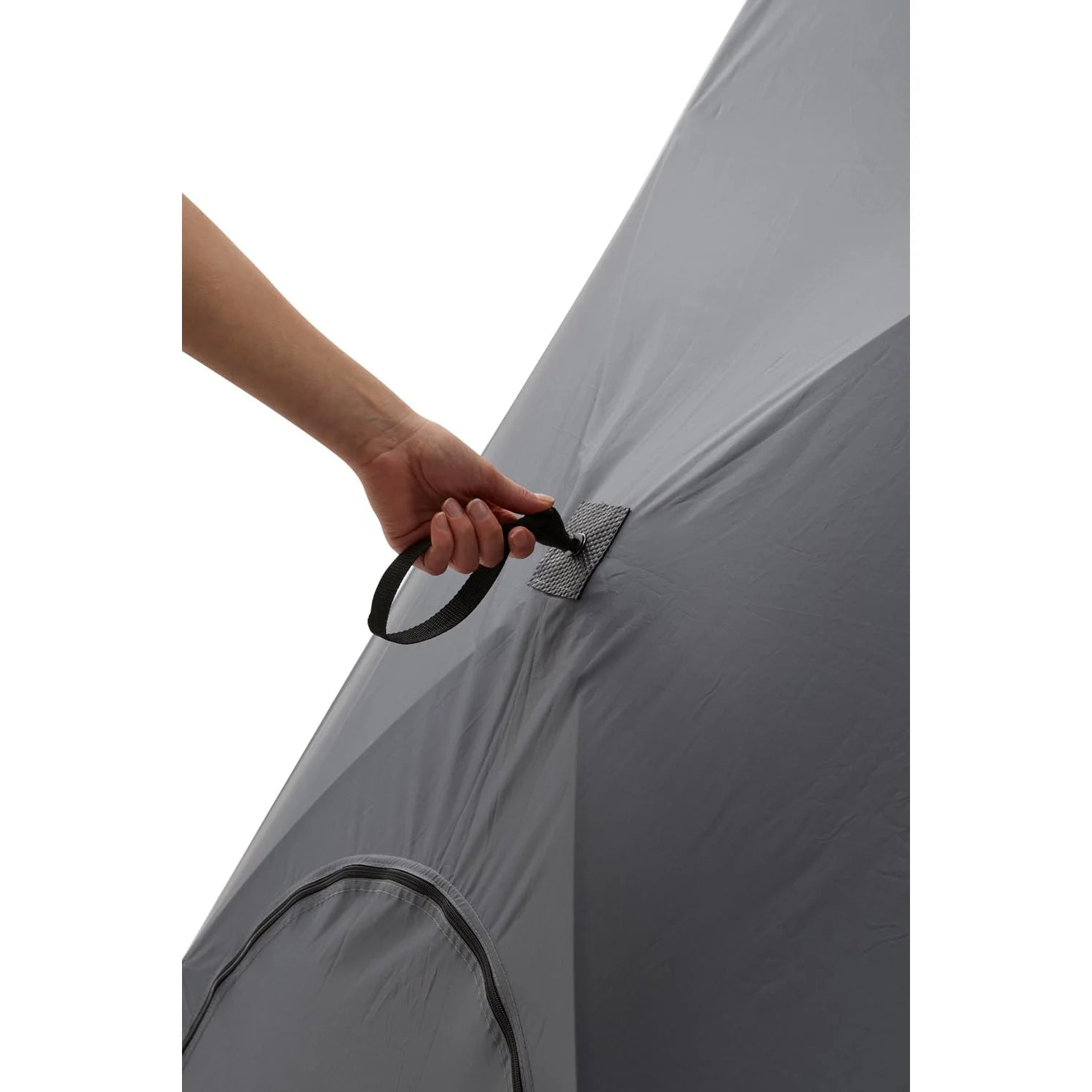 Das leichte und kompakte Strandzelt ist super schnell auf- und abgebaut. Durch Ziehen oder Drücken der mittig an den Seitenflächen angebrachten Schlaufen stellt sich das Zelt automatisch auf oder faltet sich zusammen.