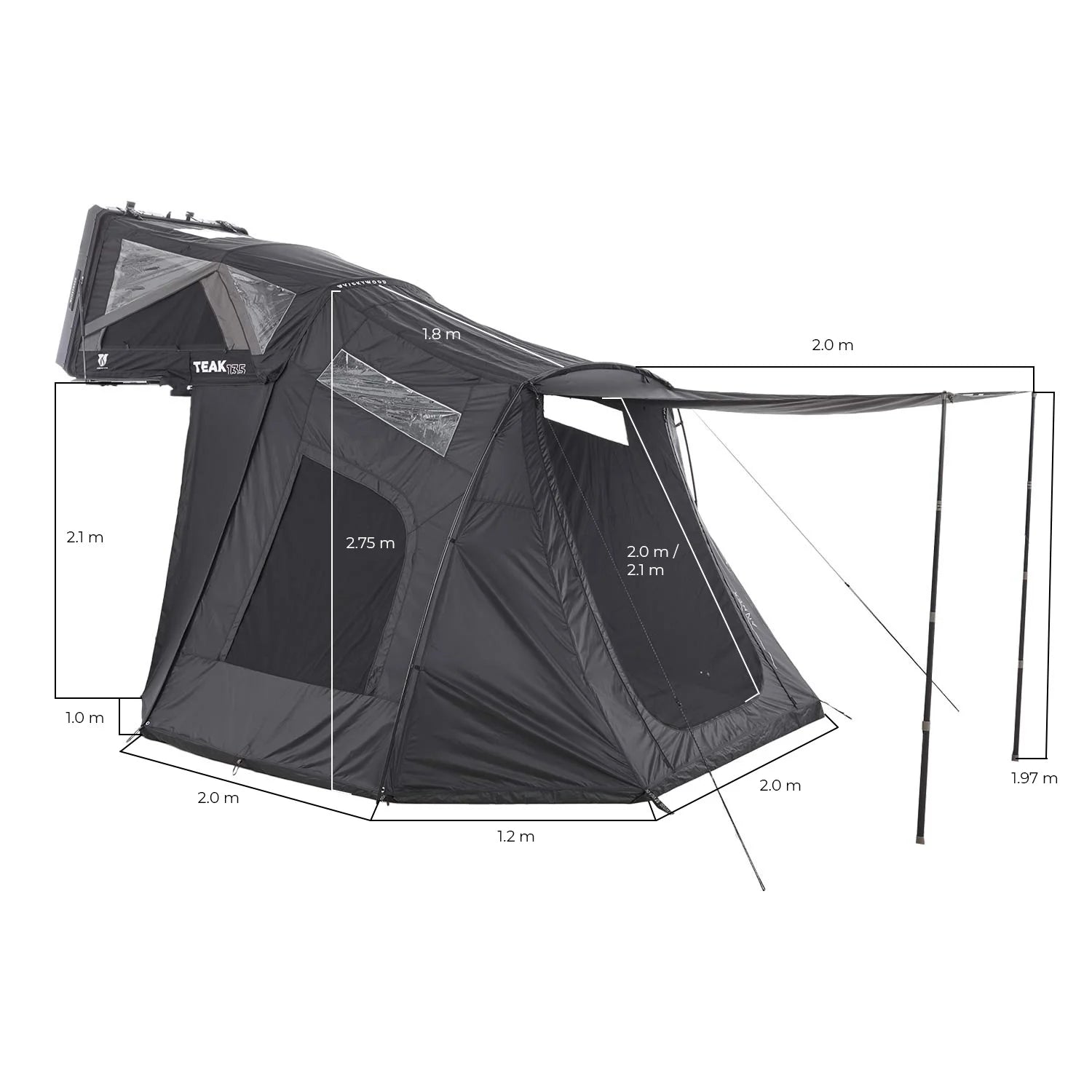 Das passende Vorzelt zum Hybrid-Dachzelt TEAK erweitert deinen Outdoor-Komfort mit einem großzügigen, wettergeschützten Raum – ideal für jedes Abenteuer.